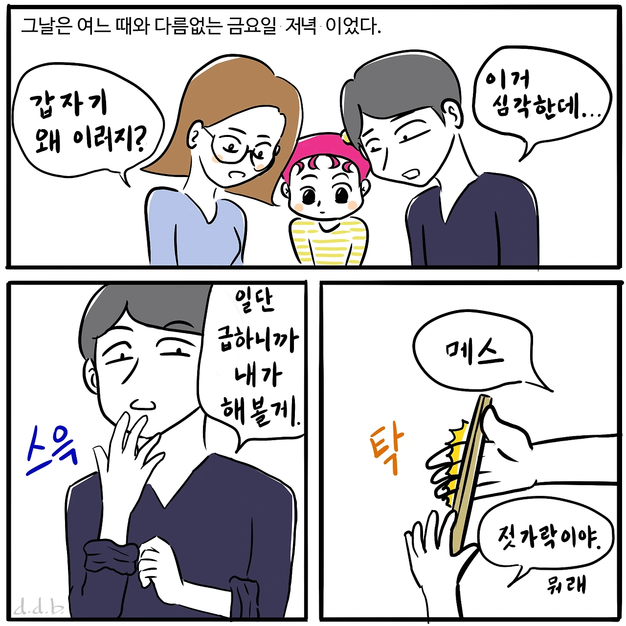 9살 딴딴이 아빠 딴딴부에요. 딴딴이네 소소한 일상을 만화로 그립니다. 인스타 id : ddanddanbu