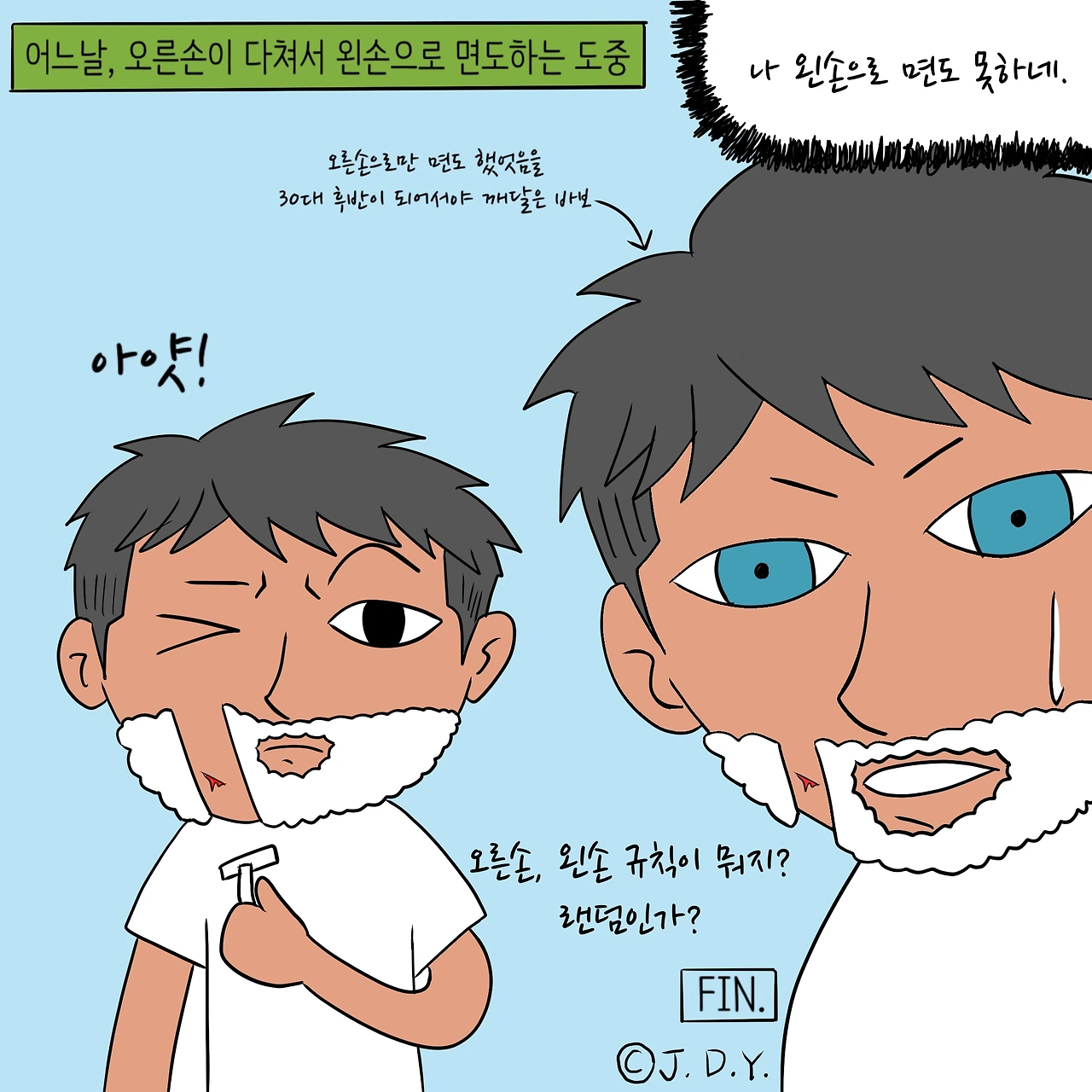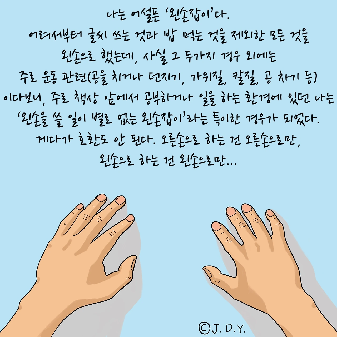 난 왼손 잡이야.