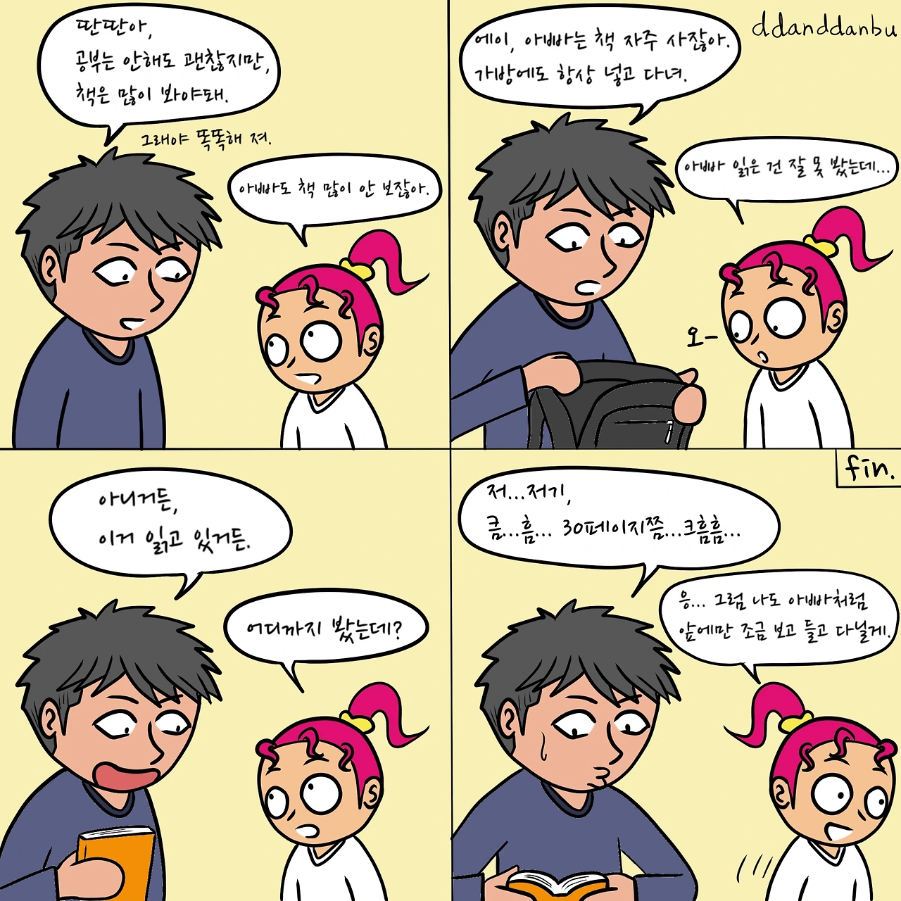 9살 딴딴이 아빠 딴딴부에요. 딴딴이네 소소한 일상을 만화로 그립니다. 인스타 id : ddanddanbu