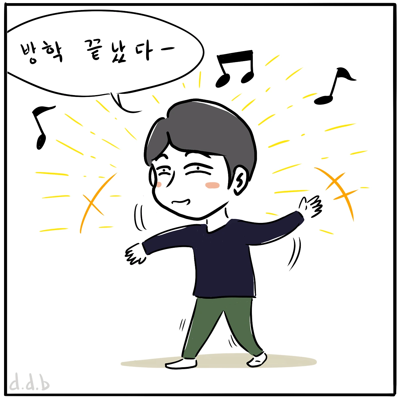 개학의 기쁨을 온몸으로 표현해 보려 했으나