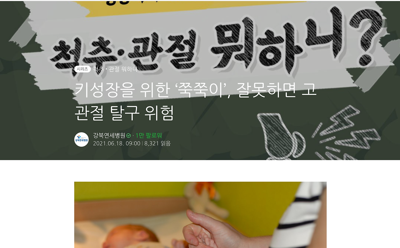얼마전 아기 쭉쭉이를 하지 말라는 내용의 피드를 보았다. 고관절탈구를 유발할 수 있다는 것이다.