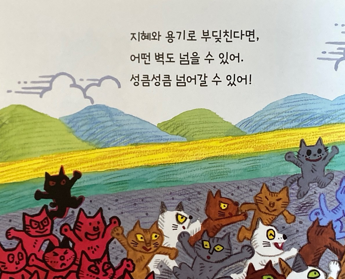 독자분들도 넘어야 할 어떤 벽이 있으실 거라 생각합니다. 커다란 벽, 더 커다란 벽이 생겨 당황하더도 결국 그림책 속 고양이처럼 '어떤 벽도 넘어가실' 독자분들을 저도 응원하겠습니다.