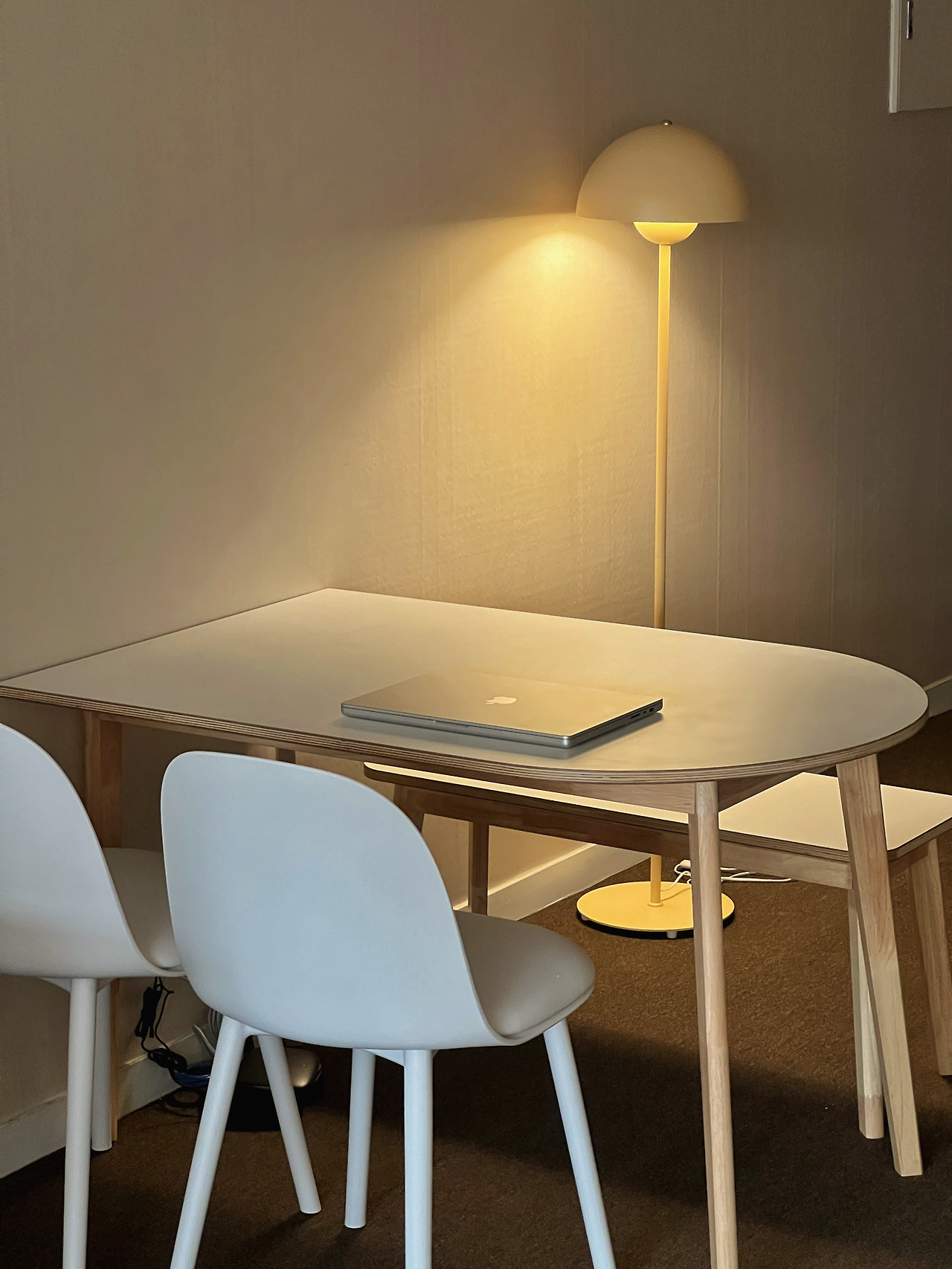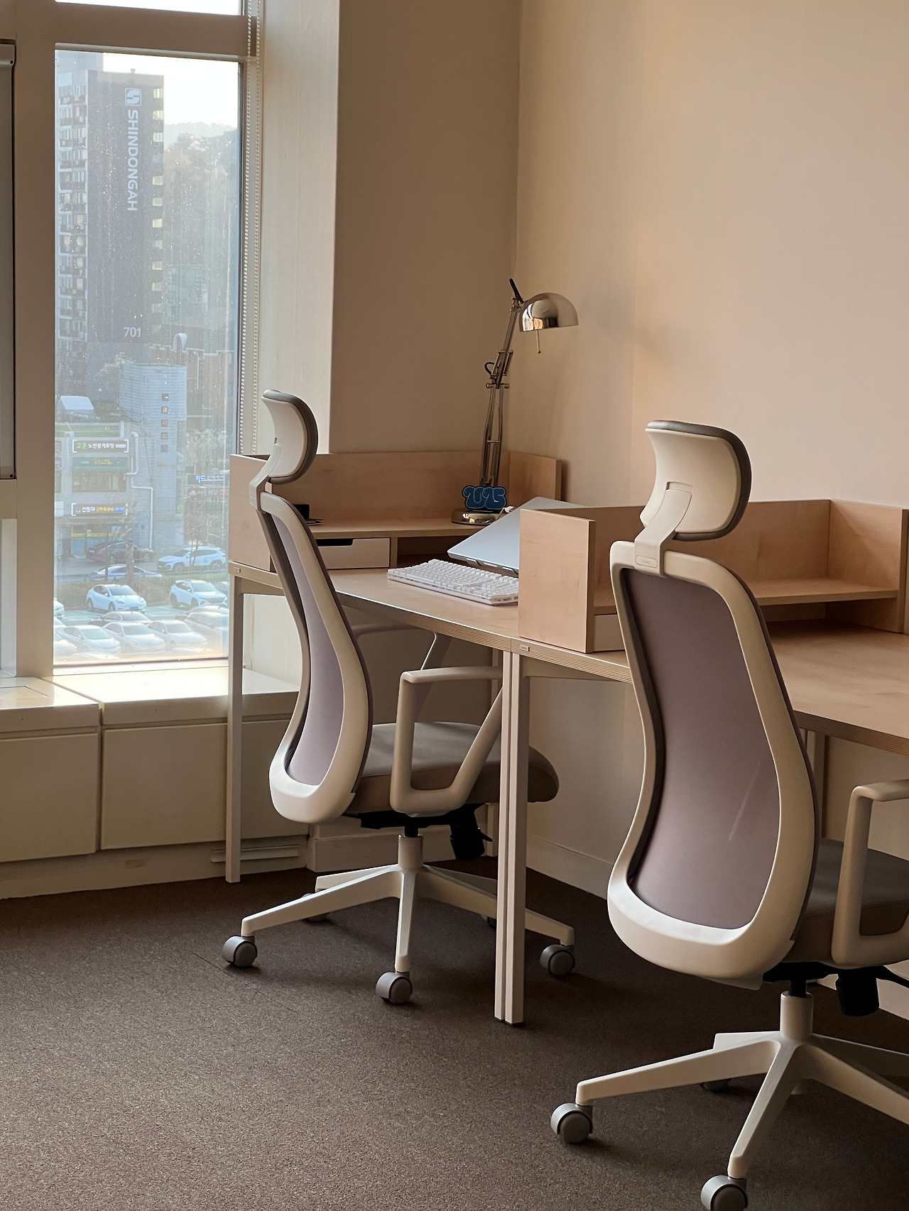 (사진에는 보이지 않지만, 간단한 음식 조리 및 해동이 가능한 싱크대가 구비되어 있습니다. 이외에도 냉장고와 전자레인지, 정수기가 있어 불필요한 이동 없이 미리 도시락 혹은 간단한 먹거리를 준비해 오면 작업실 내에서 끼니를 해결하며 편리하게 하루를 온전히 보낼 수 있게끔 신경을 기울였습니다.)