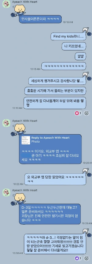 태국 잘 다녀오라는 따스운 메시지와 함께,