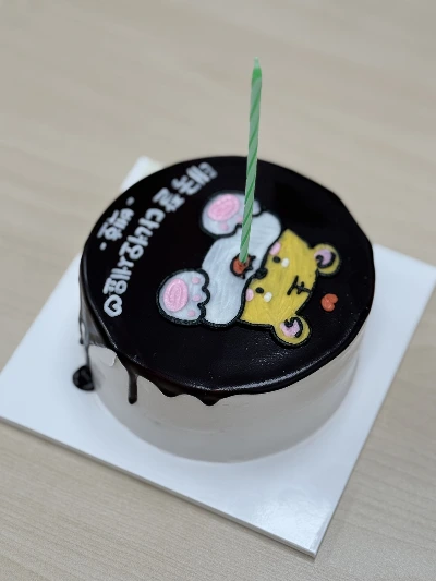 우리 실에서 직접 기획하여 만들어나갔던 회사의 소통 캐릭터가 등판한 케이크였다.