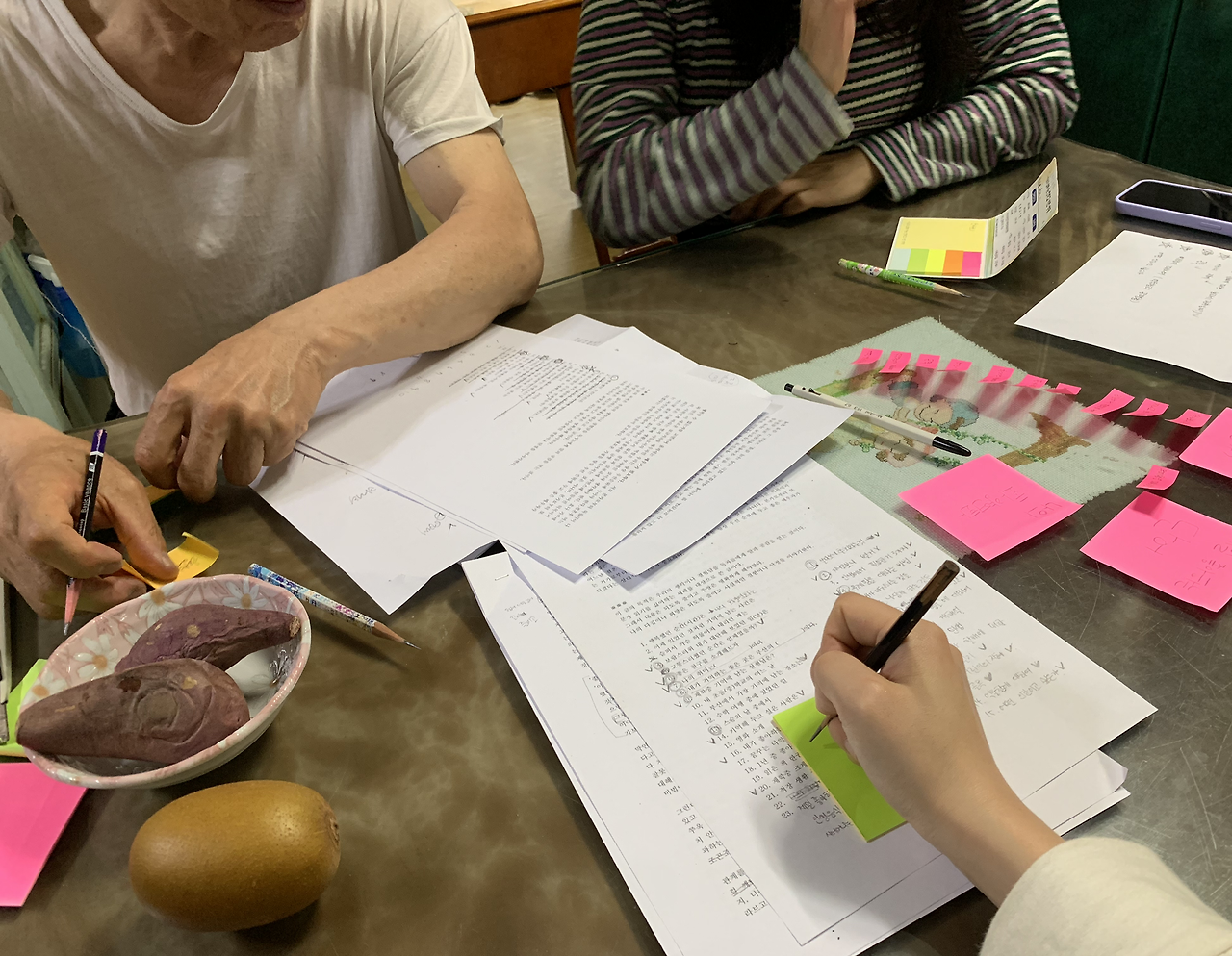 아버지가 “같이 글을 써나가면서 아버지도 1/3의 목소리를 내는 것뿐 아버지가 말했으니 다 고쳐야겠다 이렇게 받아들이지 않아야 한다”라고 하셨다. 권위를 내던지고 같은 프로젝트 멤버로서 모두를 존중해주시는 아버지의 모습이 좋고 편했다. 어째보면 ‘애엄마인 언니와 70대인 아부지와 같이 이런 프로젝트를 할 수 있는 사람이 몇이나 될까.’ 생각도 들며 감사해졌다. 나도 웃으며 “피드백을 듣되, 결국 제가 쓰고 싶은 대로 쓸 거예요”하니 모두 웃었다. 언니의 피드백까지 더해서 글을 더 간추리기로 했다.