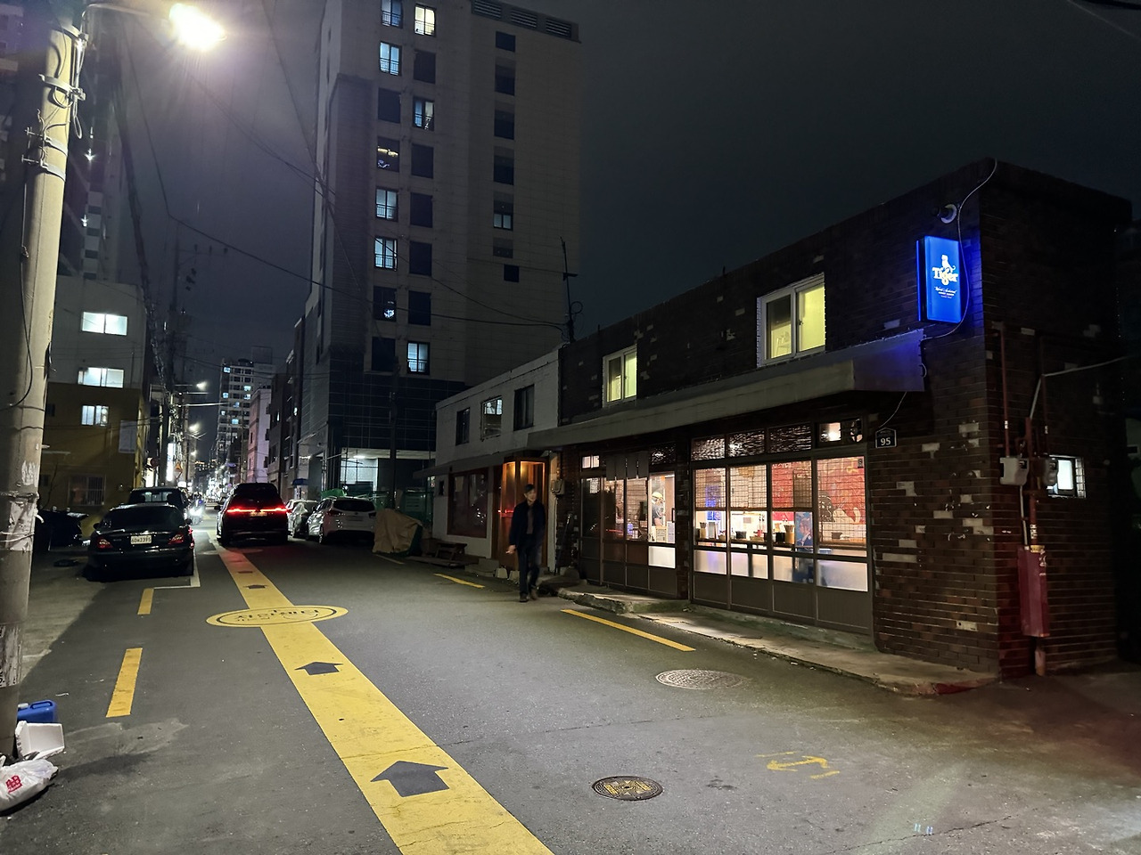이 가게의 특이한 매력은 너무 멀지도 가깝지도 않은 편안함이다. 영업시간 자체가 짧은 편이고 주말에 열 때도 있다가 요즘은 아예 휴무다. 퇴근 후 7시 30분쯤에 남편과 가서 먹고 나오면 8시가 조금 못 되는 시간이 된다. ‘우리가 마지막 손님이겠다!’ 하는 마음으로 가는데 나가기 무섭게 가게 불이 꺼진다. 매 달 가도 사장님이 아는 척을 한 적도 없고, 나도 바라지 않는다. 나는 친절하고 넉살 좋은 사장님을 좋아하는데 이 사장님은 무뚝뚝한 유형에 가깝다. 음식에 집중하고 언제나 모두에게 동일한 서비스를 제공하고자 하는 마음이 느껴진다. 귀찮거나 권태로움에서 오는 불친절함이 아니라 필요한 말만 하며 혼자오든 여럿이 오든 부담 주지 않고자 하는 사장님의 마음이 잘 전달된다. 건너편 화려한 부산국제금융센터에 2호점을 내어 깨끗하고 번듯한 매장도 있지만 이 골목 속 허름한 식당의 편안함을 뛰어넘을 수 없다.