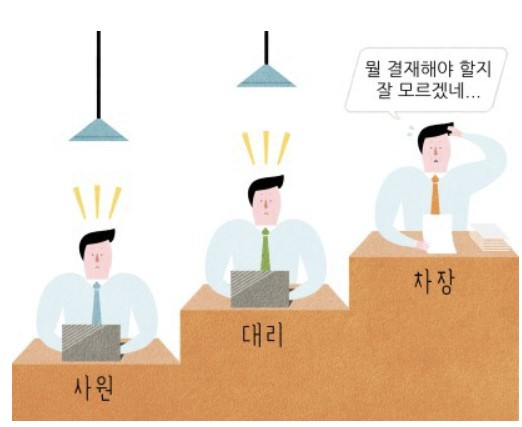 위계적 조직사회에서는 암묵적으로 설정된 규칙과 방향성을 충실하게 따르기만 하면 위로 올라갈 수 있다고 믿는 경향이 팽배합니다. 관료 조직이 바로 이런 경우에 해당되죠. 한마디로 계층성을 중시하는 것을 말합니다. 나이가 들어 직위가 올라가면 업무 능력이 떨어질 수밖에는 없습니다. 결국 위로 올라간다는 말은 조직 내에서 관심과 시선을 한 몸에 받는다는 것을 의미합니다. 그 에너지가 운동(업무)에너지로 쓰이는 것이 아니라 현상 유지를 위한 위치에너지로 쓰이게 되는 것이죠.