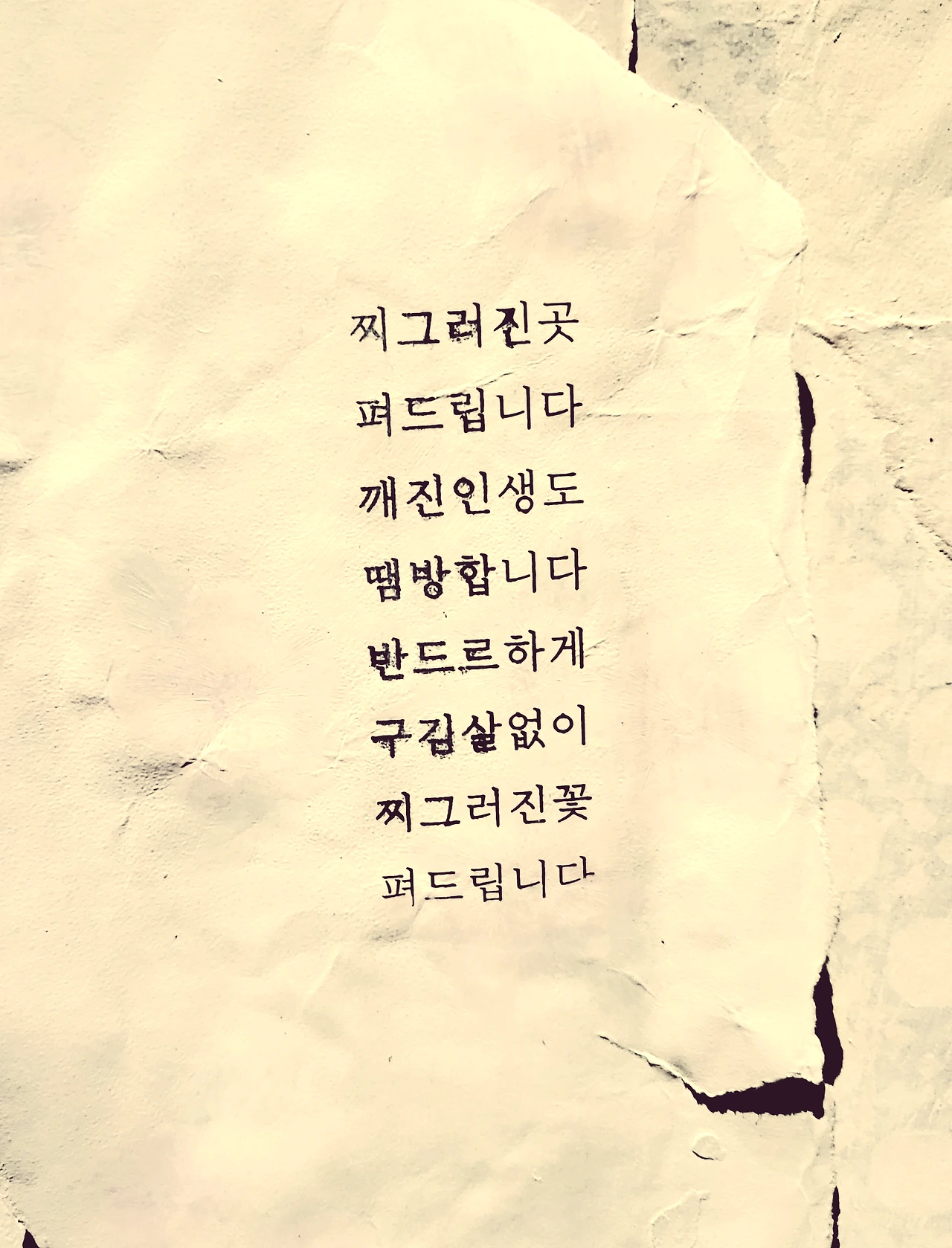 "찌그러진 곳 펴드립니다. 깨진 인생도 땜질합니다. 반드르하게 구김살 없이..."