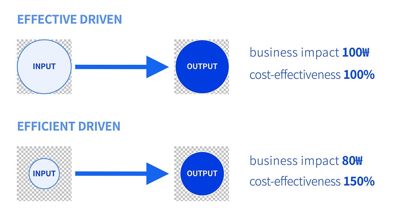 효과성은 결과의 임팩트, 효율성은 가성비에 중점을 둔다