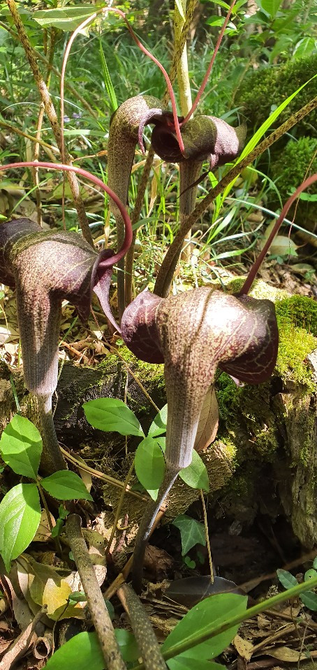 천남성은 맹독을 지닌 독초이다. 옛날에 사약을 만드는 재료로도 쓰였다고 한다. 이 꽃에 대해서는 따로 한 꼭지 글을 써야겠다. 그 모양이 기이하여 잘못 손으로 만지든지 하는 일을 삼가야 하는 위험한 녀석이다. 흑두루미천남성이고 불리기도 한다.