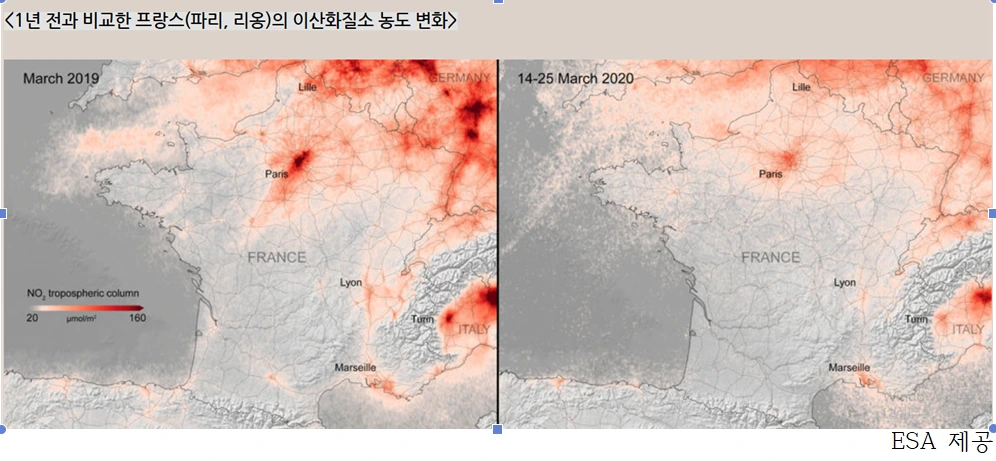 실재로 코로나 19가 진행되는 동안 세계의 하늘은 훨씬 푸른 빛을 되찾았다. 항공기 운항이 줄거나 공장이 멈춰섰기 때문이다.