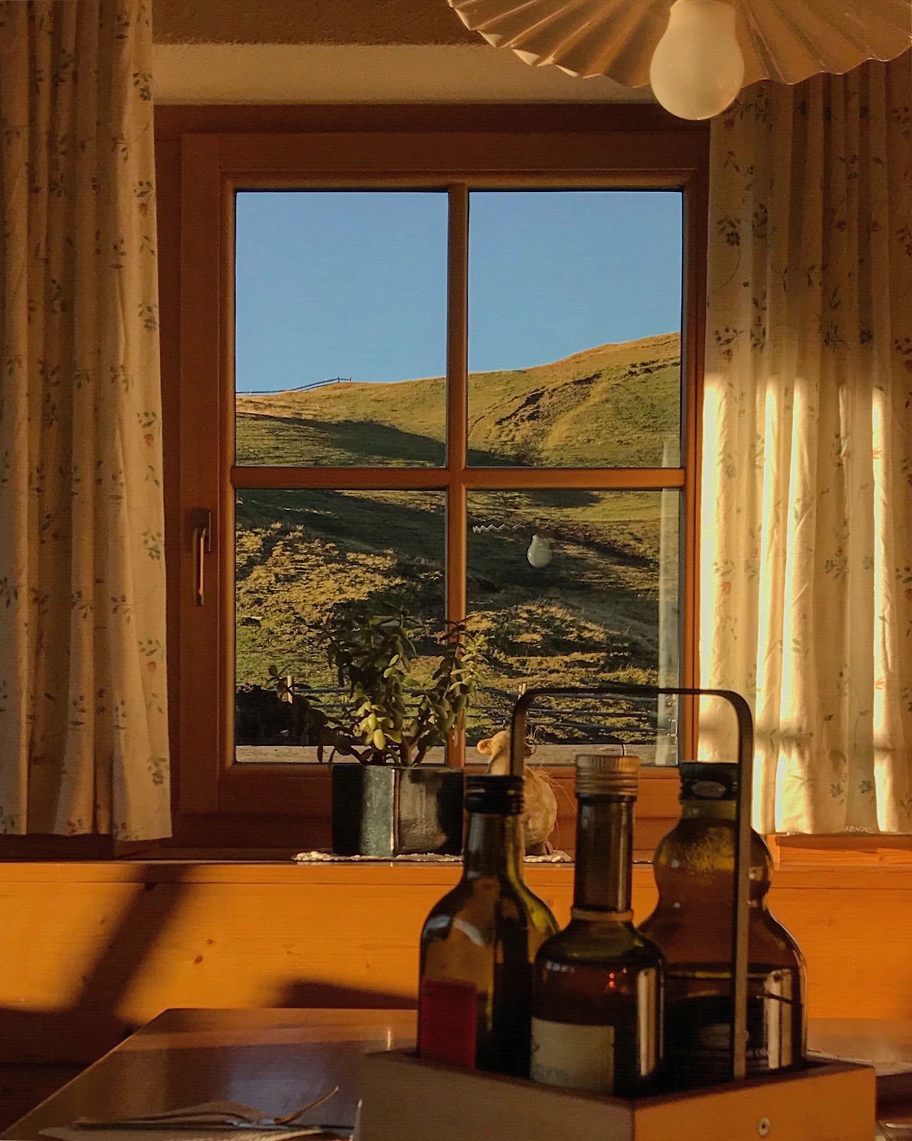 한참을 고민하다가 창밖을 보았다. 근데, 너무 예뻤다. 창밖으로 보이는 뷰가 너무 예뻤던 거다. 그때 마음이 확 바뀌었다. 빨간 산장은 아니지만 이 곳도 산장이긴 하니 산장에서 묵겠다고 했던 큰 목표가 바뀐 건 아녔다. 방값도 빨간 산장보다 저렴했고 주인장도 꽤 친절했다. 무엇보다, 푸른 산장에서도 충분히 멋진 뷰를 볼 수 있었다. 급하게 빨간 산장을 향해 떠났더라면 볼 수 없었을, 창밖으로 시시각각 변하는 돌로미티의 모습들을 충분히 즐길 수 있었다. 그래서 친구들에게 말했다.