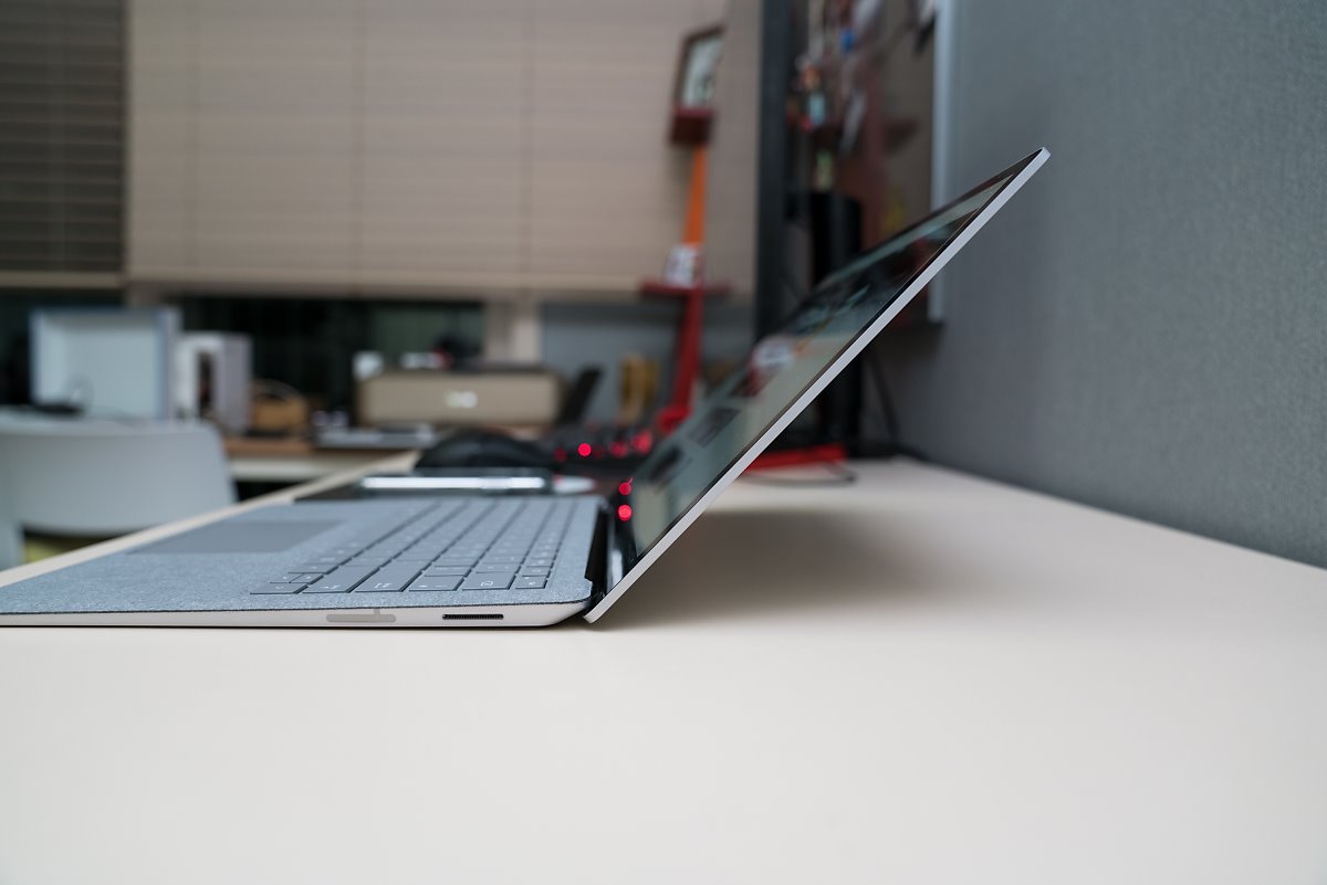보통 13인치, 15인치 디스플레이를 탑재한 노트북들이 Full HD 해상도를 탑재한 경우가 많은데 서피스랩탑은 2256 X 1504(201PPI)가 적용되었다. 디스플레이는 멀티 터치를 지원하고 코닝 고릴라 글래스3가 적용되었다. 터치감은 상당히 뛰어나다.