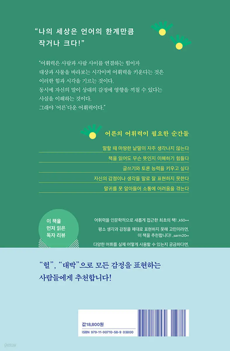 갈 수록 활자보다는 미디어를 보는 시간이 늘어날 수록 멍청해지는 듯한 느낌을 받는 요즘, 우연히 이 책(어른의 어휘력 -유선경)의 띠지를 봤다. 순간 너무 찔려서 그냥 지나칠 수 없었다.