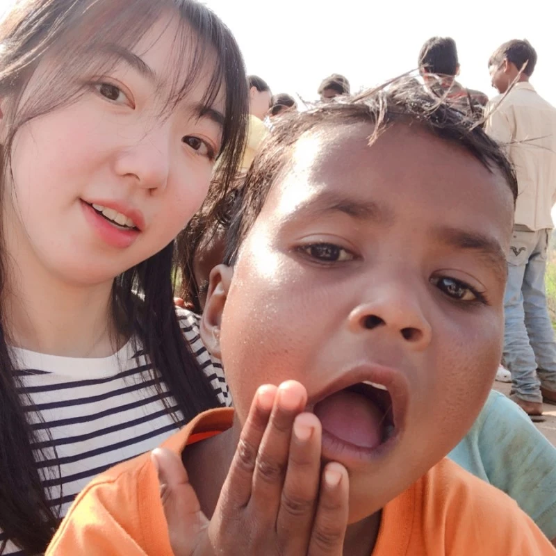 이제 진짜로 다 마치고 인도주의 팀은 먼저 돌아가고, 예그리나는 도서관 보수 공사를 진행했다. 우리도 아이들한테 인사를 하는데 평소에 하던 '까르 밀렝게(내일 만나)' 대신에 '피르밀렝게(나중에 만나)'라고 인사를 하니 갑자기 마음이 너무 아팠다. 내 인사에 아이들이 '피르밀렝게?? 노노 까르 밀렝게~' 이렇게 자꾸 내일 보자고 인사하니까 진짜 내일 다시 오고 싶은 마음도 들고, 내년에 과연 다시 올 수 있을까 라는 생각 때문에 눈물이 고였다. 눈물이 고이기만 했는데 손을 내밀어서 닦아주려고 손을 내밀어서 더 슬퍼져서 결국은 펑펑 울었다. 여기저기서 아이들이 손을 내밀어서 울지 말라고 눈물을 닦아주는데 그 손길이 너무 고마웠다. 말은 통하지 않아도 사랑할 수 있구나 싶었다. 엄마들과 아이들이 안아주고 쓰다듬어 주는 그 품이 너무나도 따뜻했다. 그렇게 펑펑 울다가 사진으로 아이들 모습을 좀 남기자! 하고 카메라를 켰는데 증믈 꼴이 말이 아니었다. 눈이랑 코가 너무 빨개서 어디다 쓸 수 없는 사진들만 잔뜩 찍었다.