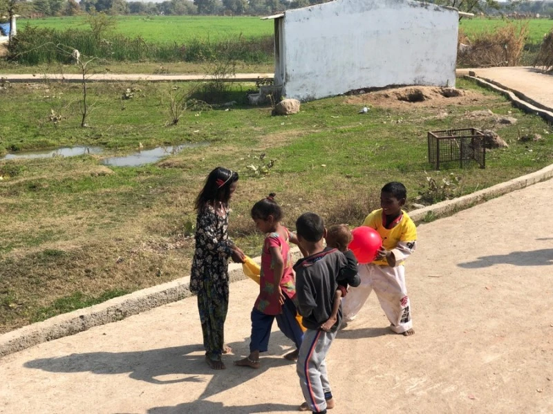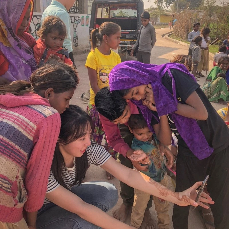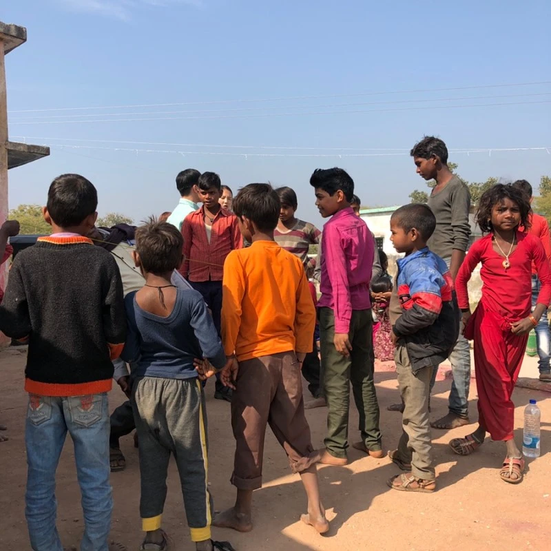 공터가 꽤 넓어서 두 개를 나눠서 동시에 진행했다. 2인 3각이 끝난 아이들은 옆으로 넘어와서 보자기로 공 옮기는 놀이를 했는데 보자기가 끝나면 갈 곳을 잃고 방황하길래 다 같이 갑자기 달리기를 하게 되었다. 사실 달리기를 하자고 말한 건 아닌데 내가 뛰니까 다들 같이 뛰어줘서 멀리 있는 나무를 기준으로 한 바퀴를 뛰었다. 그렇게 한 세 바퀴 정도 돌고 나니까 너무 힘들어서 내가 할 줄 아는 힌디어를 동원해보았다. 우리나라에서 번호 세듯이 하나, 둘, 셋... 을 한 명씩 일어나면서 말하려고 했는데 아이들이 내 행동을 따라 하는 데에 그쳐서 결국 할 수 없었다. 내가 '엑(하나)'를 하면 다들 하나, 하나, 하나...로 끝나버린다! 그래서 그냥 줄 가지고 림보를 했다. 림보도 잘하는 아이들!!