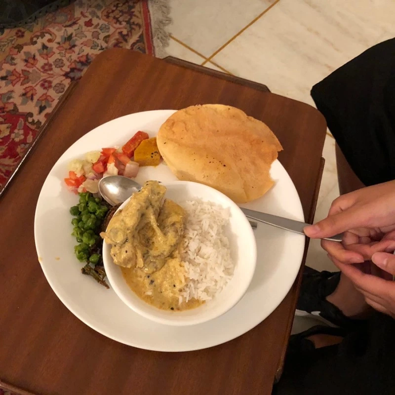 나마트 집 커리는 진짜 너무 맛있다... 코코넛 치킨 커리인데 태국의 마사만 커리와도 비슷하다. 커리도 맛있고, 후식까지 엄청나다. 말라는 베이커리를 운영하기 때문에 케이크를 정말 잘 만든다. 자신의 생일 케이크도 직접 만들었다. 집에 놀러 온 가족들에게 칫솔과 핫팩과 마스크팩을 하나씩 나누어 주고, 다음 날 새벽 기차를 위해 일찍 잠에 들었다.