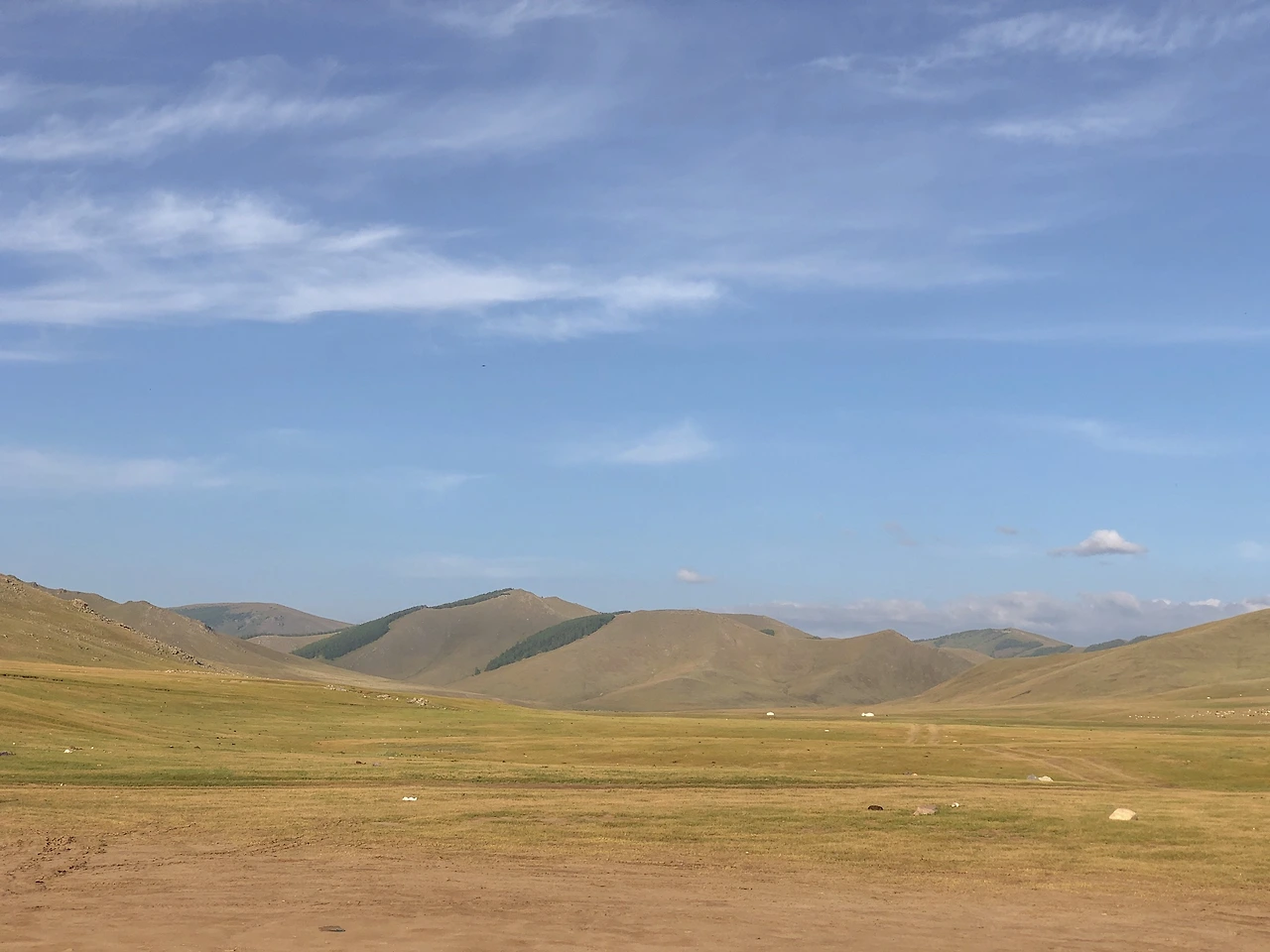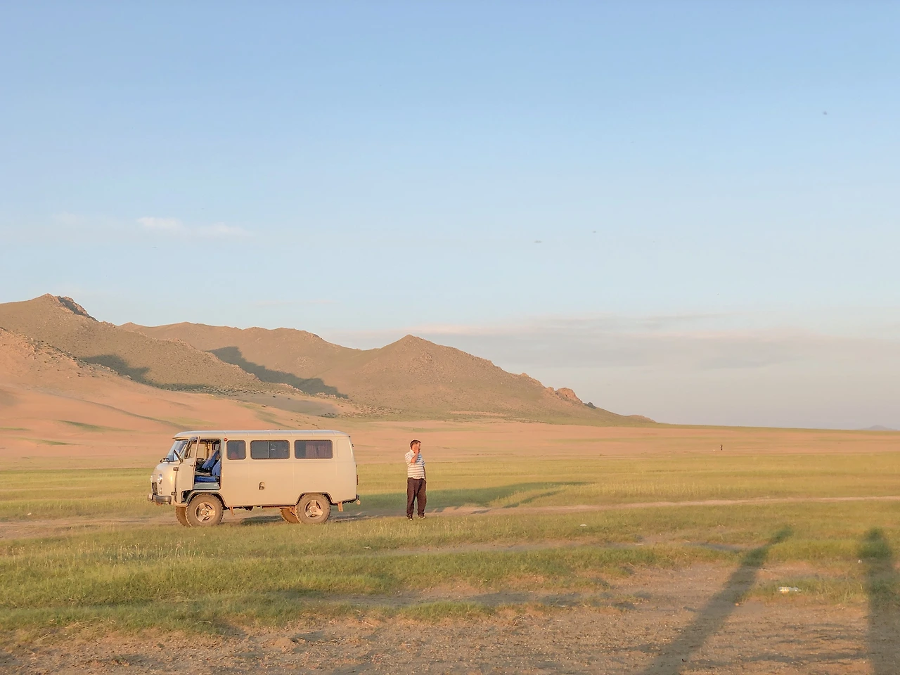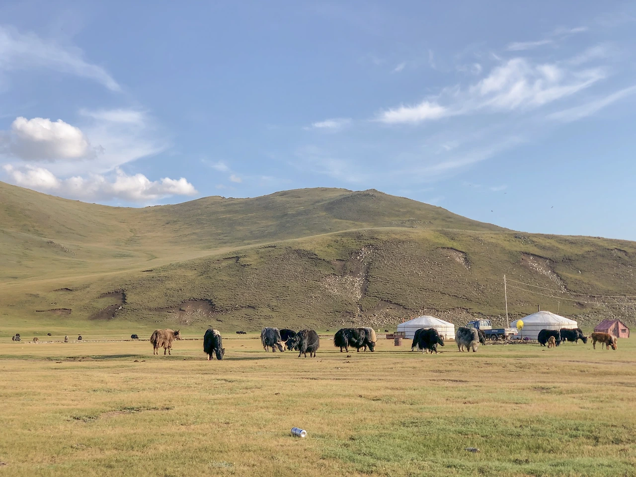따뜻한 색으로 해가 지는 모습. 차에만 너무 오래 있었더니 몸은 고단했지만 일몰을 보니 정신이 말짱 돌아왔다! 차에 앉아만 있던 우리보다는 운전에 집중하던 기사님이 더 힘드실 게 분명하지만ㅠㅠㅠ 사진은 저녁 6시쯤으로 보이지만 사실 9시가 훌쩍 넘은 시간이었다. 게르 캠프에 도착하고, 경치를 구경하고, 짐을 풀고 정리하다 보니 저녁 식사는 11시가 넘어서 시작했다. 피곤했지만 여행 중에 처음으로 하늘이 맑은 날이라 다 같이 별을 바라보다 사진을 찍고 잠에 들었다.