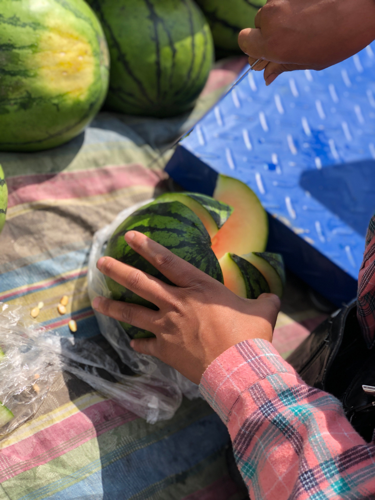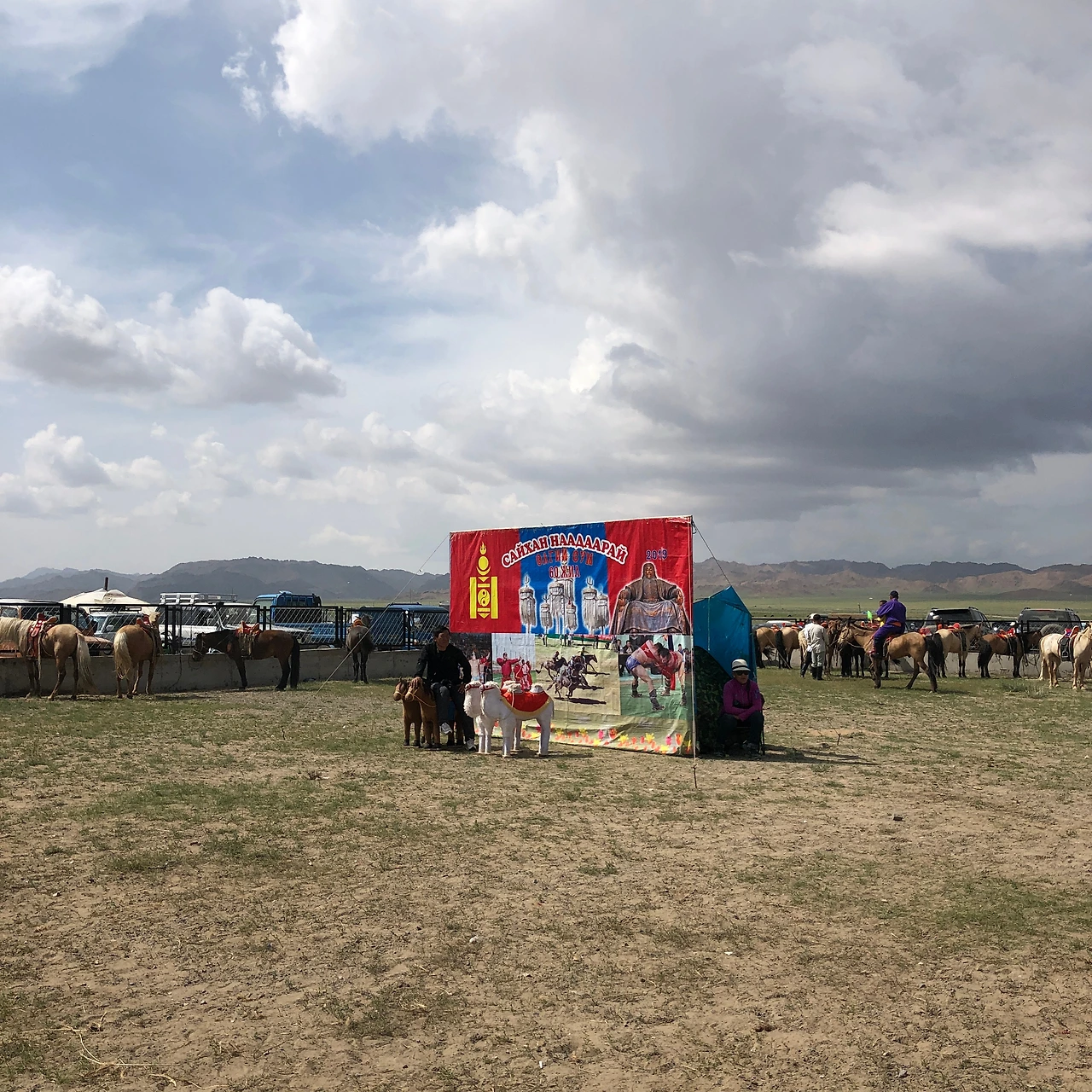 점심을 먹기 위해 들린 도시에서 정말 운 좋게 나담 축제를 볼 수 있었다. 올해만 두 번째 나담이다. 경기장 근처에서는 수박을 트럭에 쌓아놓고 팔기도 하고, 여러 가지 음식들, 게임을 할 수 있는 가판대들이 즐비하다. 우리나라에서 갔던 인삼축제가 생각났다.