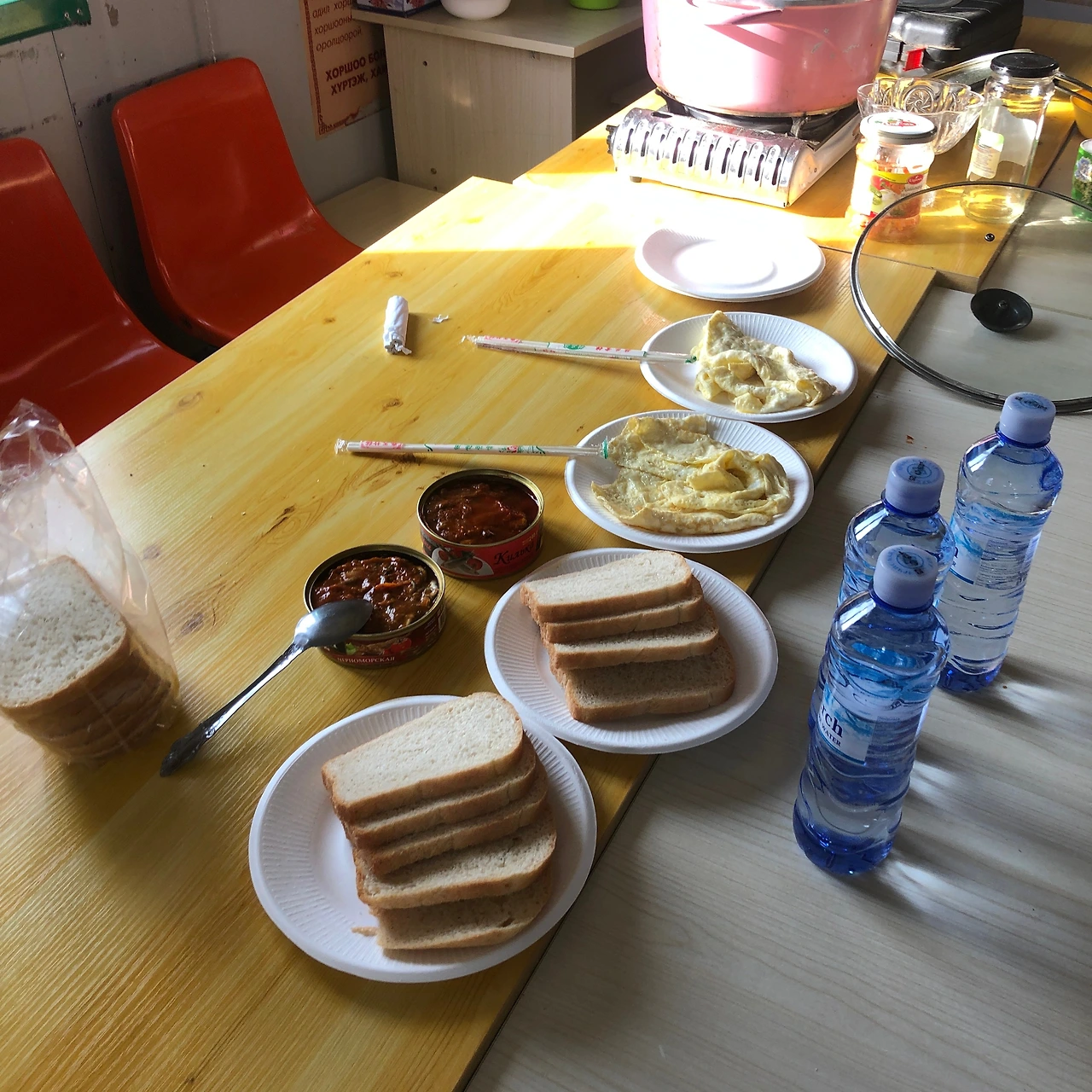 매일 아침 식사 메뉴는 비슷한 편인데 오늘은 통조림이 추가되었다. 고추참치 같은 맛이라길래 한 입 해봤는데 우리나라 참치처럼 갈기갈기 찢긴 게 아니라 조금 먹기 힘들었다(저는 회 아닌 이상 생선은 먹지 않는 독특한 식성을 가졌습니다). 동행들은 맛있게 잘 먹었으니 나쁘진 않았던 듯하다.