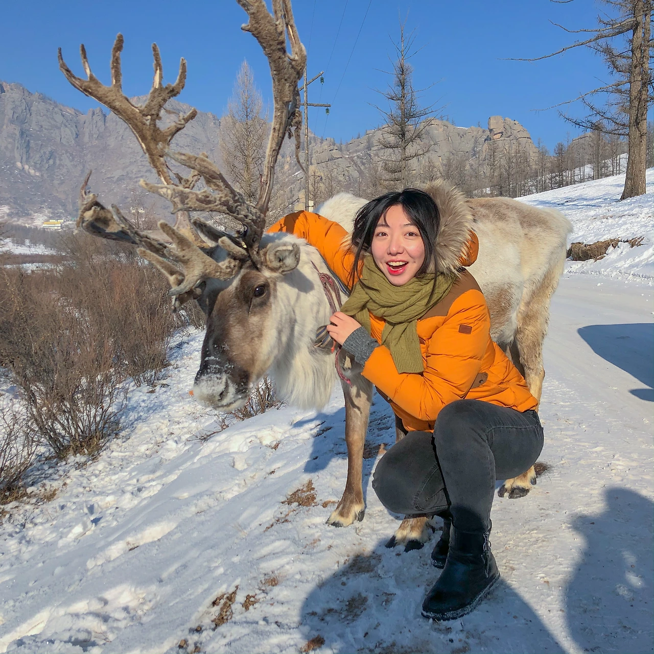 길 가다 만난 순록. 이 날 가장 운이 좋았던 순간이 아닐까 싶다. 좁은 산을 넘는데 갑자기 나타난 순록 두 마리! 마침 주변에 지나가는 차도 사람도 없어서 마음껏 볼 수 있었다. 순록은 홉스골에 가야만 볼 수 있다는 얘기를 들었는데 테를지에서 만나다니... 홉스골에 가지 않아도 여한이 없습니다.