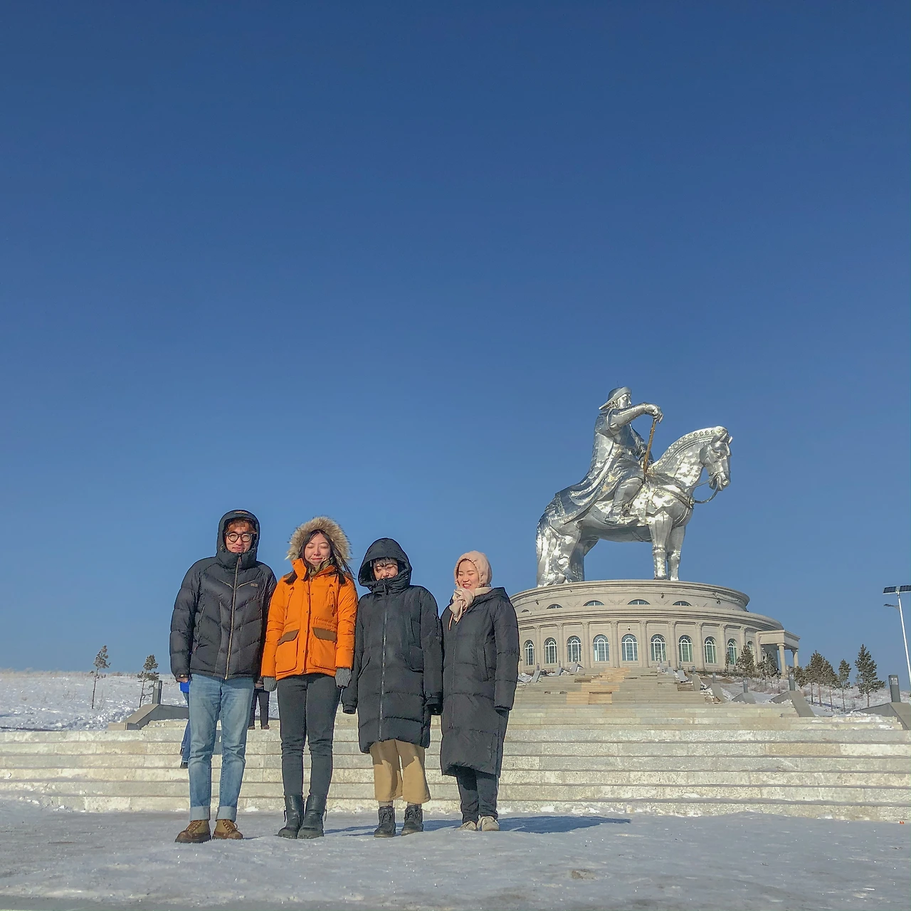 사실 바가노르-울란바타르를 달에 여러 번 이동하기 때문에 기마상은 수도 없이 봤기 때문에 별 감흥이 없었고, 오히려 그 앞에 있는 나무에 눈이 갔다. 나무에 핀 상고대가 이 곳의 제일 명물이 아닐까 하는...