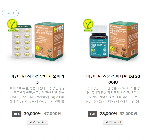 제품은 대표적으로 오메가 3와 비타민 D3를 판매하고 있다.