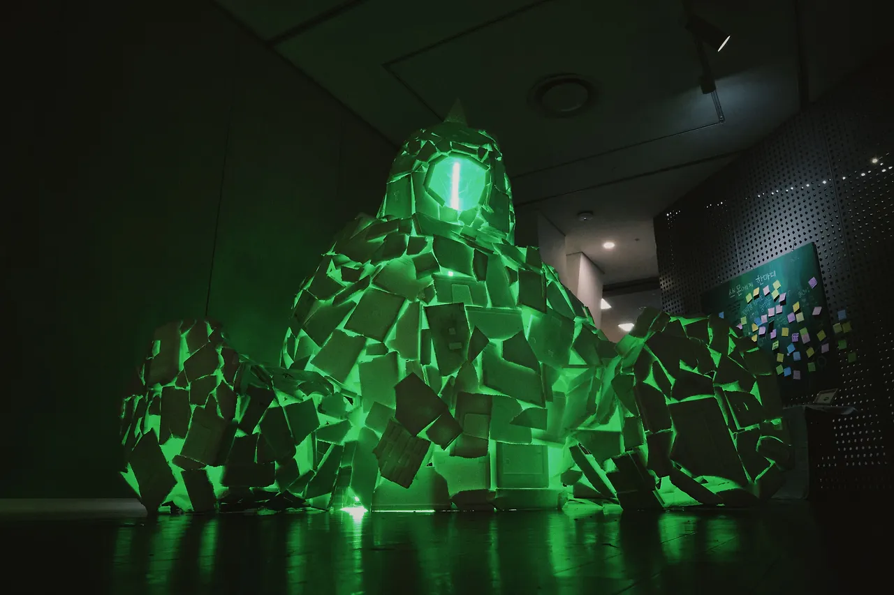 단단하고 부피가 큰 스티로폼 조각들이 모여 외눈박이 거대 쓰몬이 되었다.