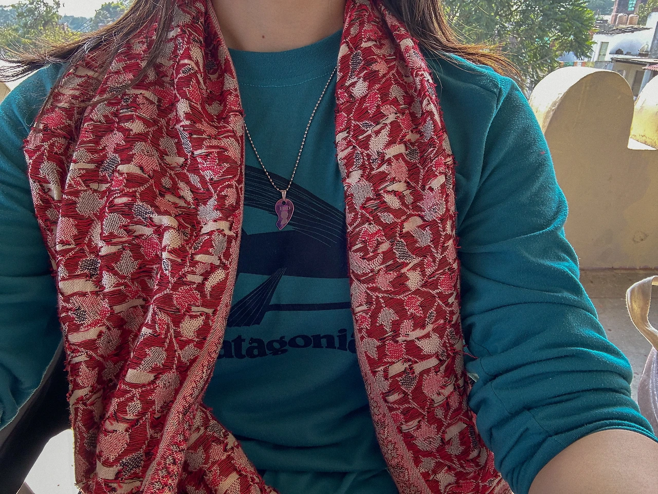 갑자기 선물이 있다며 나를 집으로 데려간 라키. 하트의 반쪽을 내 목에 걸어줬다. 번역기를 읽지 못해 내가 힌디어를 읽어 대화를 겨우 나눴다.