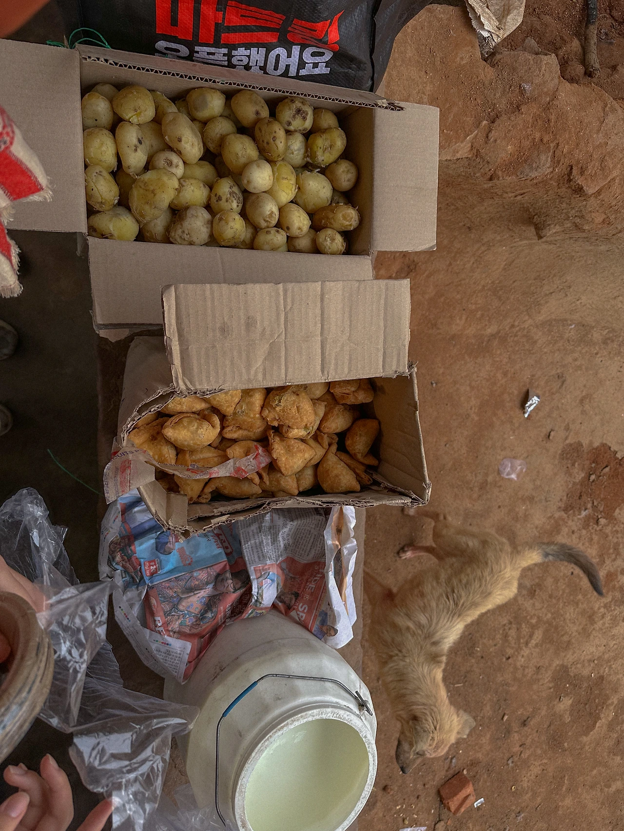 찬드라반에 도착해서 감자와 사모사, 우유를 나눠줬다. 감자 크기가 제각각이라 작은 걸 두 개씩 담았더니 부족해졌다. 아무래도 다음부터 감자는 넉넉하게 주문해야겠다.