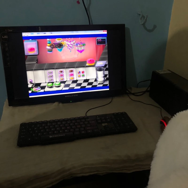 루드라가 방에 들어가서 컴퓨터 켜길래 뭐하나 했는데 진짜 간단한 케이크 만들기 게임을 하고 있었다. 윈도우 기본 게임인가 보다.