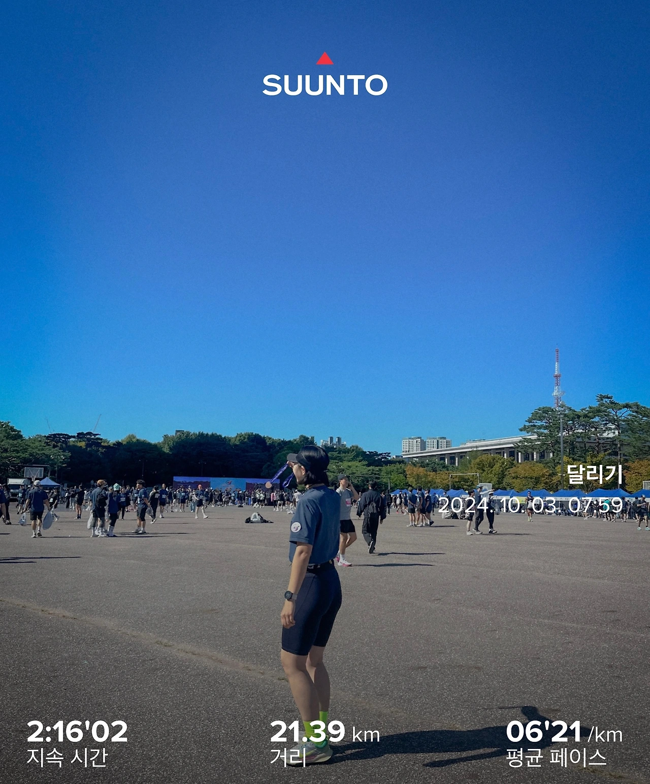 하지만 중간부터 더위에 지쳤는지 배는 고팠지만 아무것도 먹을 수가 없었다. CP에서는 아무것도 먹지 못하고 음료만 마신 채 지나쳤다. 피니시 라인에 가까워질수록 체력이 고갈되어 걷다 뛰다를 반복했지만, 포토그래퍼와 사진 찍어주는 지인이 보일 때만 잠깐씩 뛰며 겨우 체면치레를 했다.