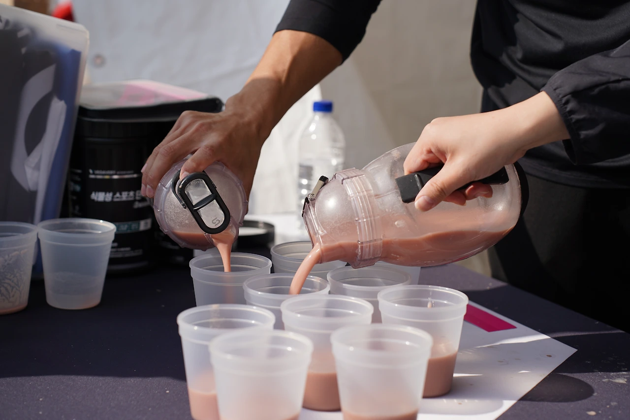 다회용기에 마시는 음료들도 잔뜩 준비되어 있었다. 베가베리의 비건 프로틴 음료와 아리수! 아리수 부스에서는 아메리카노와 망고티, 자몽티가 있었다.