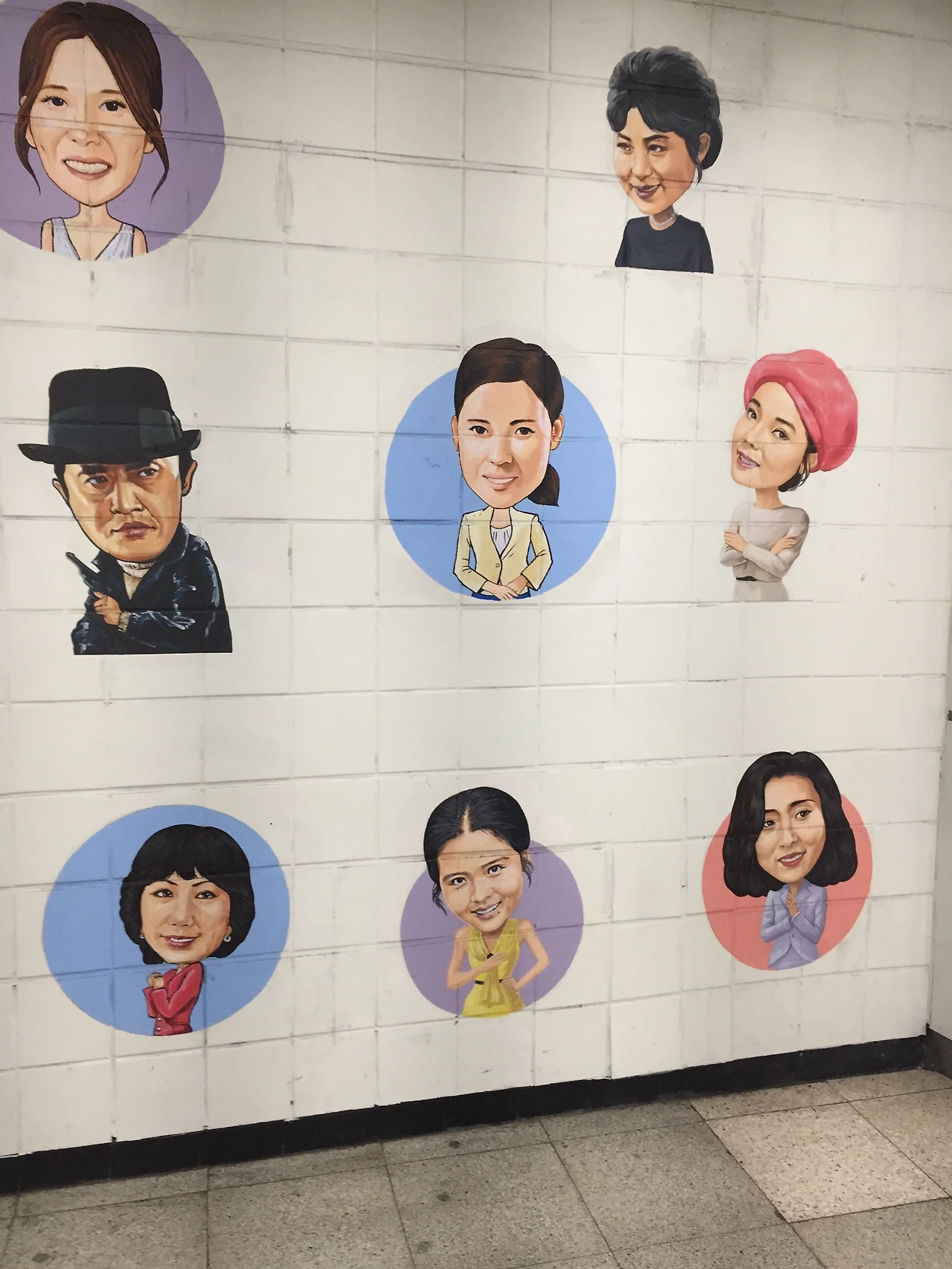 충무로 지하철역 1,2,8번 올라가는 길에 영화인의 길이라는 캐리커쳐 벽화가 있다.