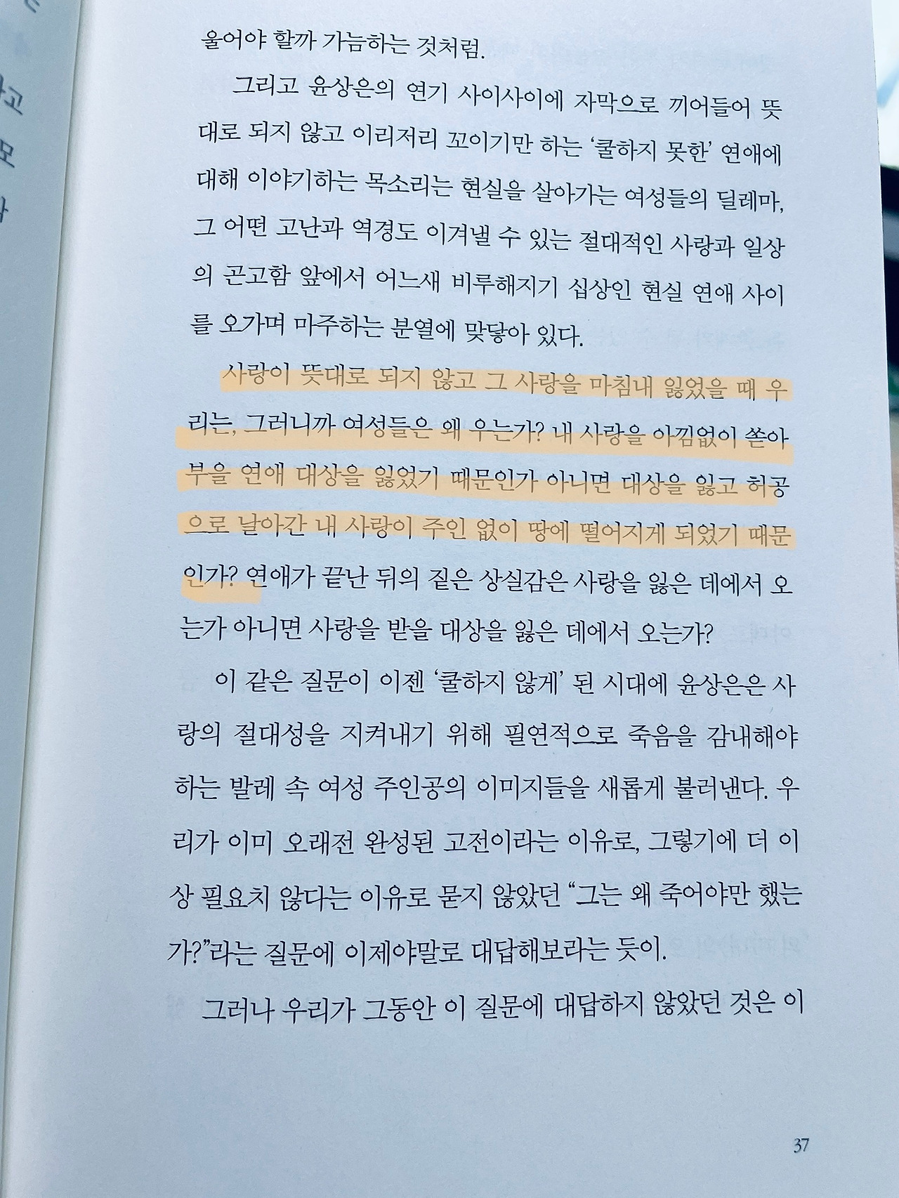 아름답고 현명한 것처럼 보이는 여자들이 거의 목에 올가미라도 걸린 것처럼, (연인이라고는 하나) 인성이 빻은 남자의 사랑을 못 얻으면 차라리 죽는 게 낫다, 식의 태도가 아무리 운명 타령을 해도 감정이입이 안 되었다.