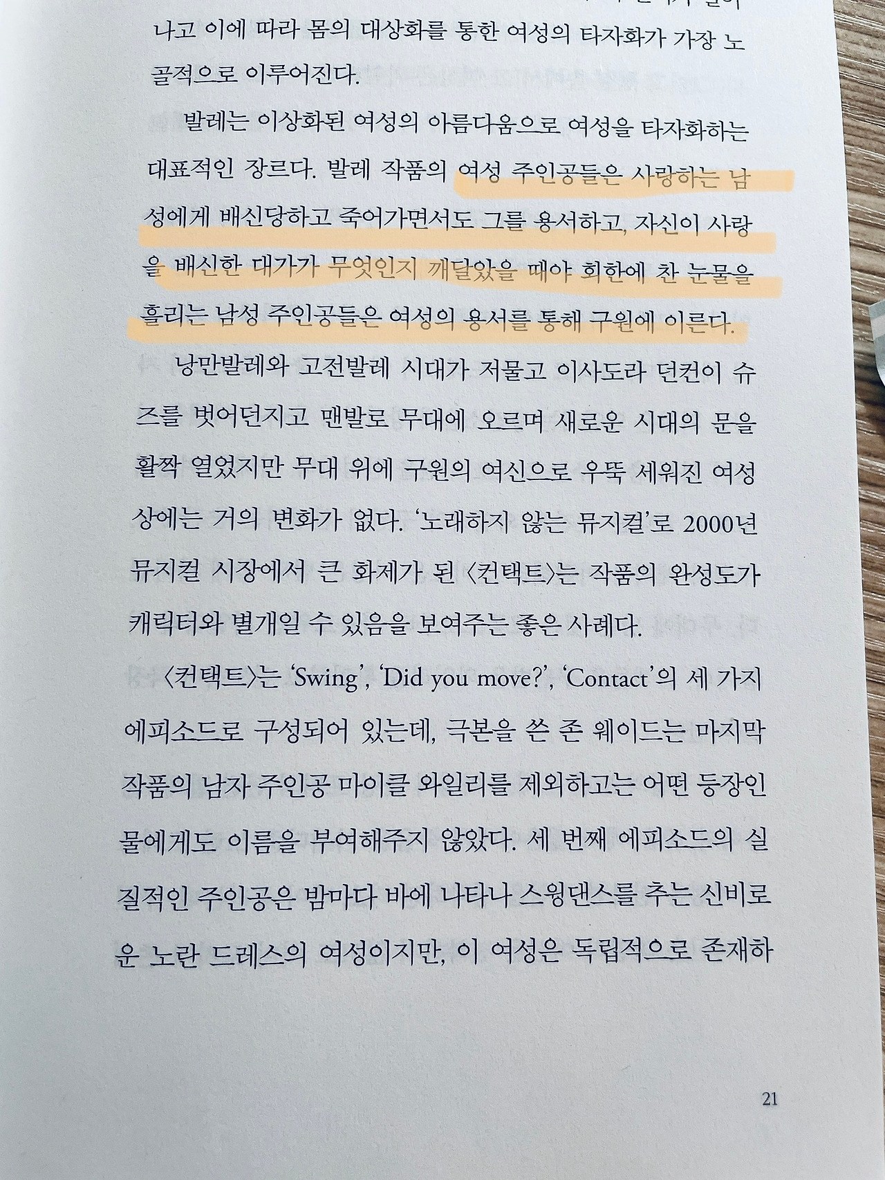 이 책은 발레 공연 속에 녹아있는 여성 캐릭터들에 대한 무용칼럼니스트 윤단우 작가의 비평집이지만 발레나 무용에 대한 지식이 전혀 없는 사람이 읽어도 무리 없이 재미있게 읽을 수가 있다.