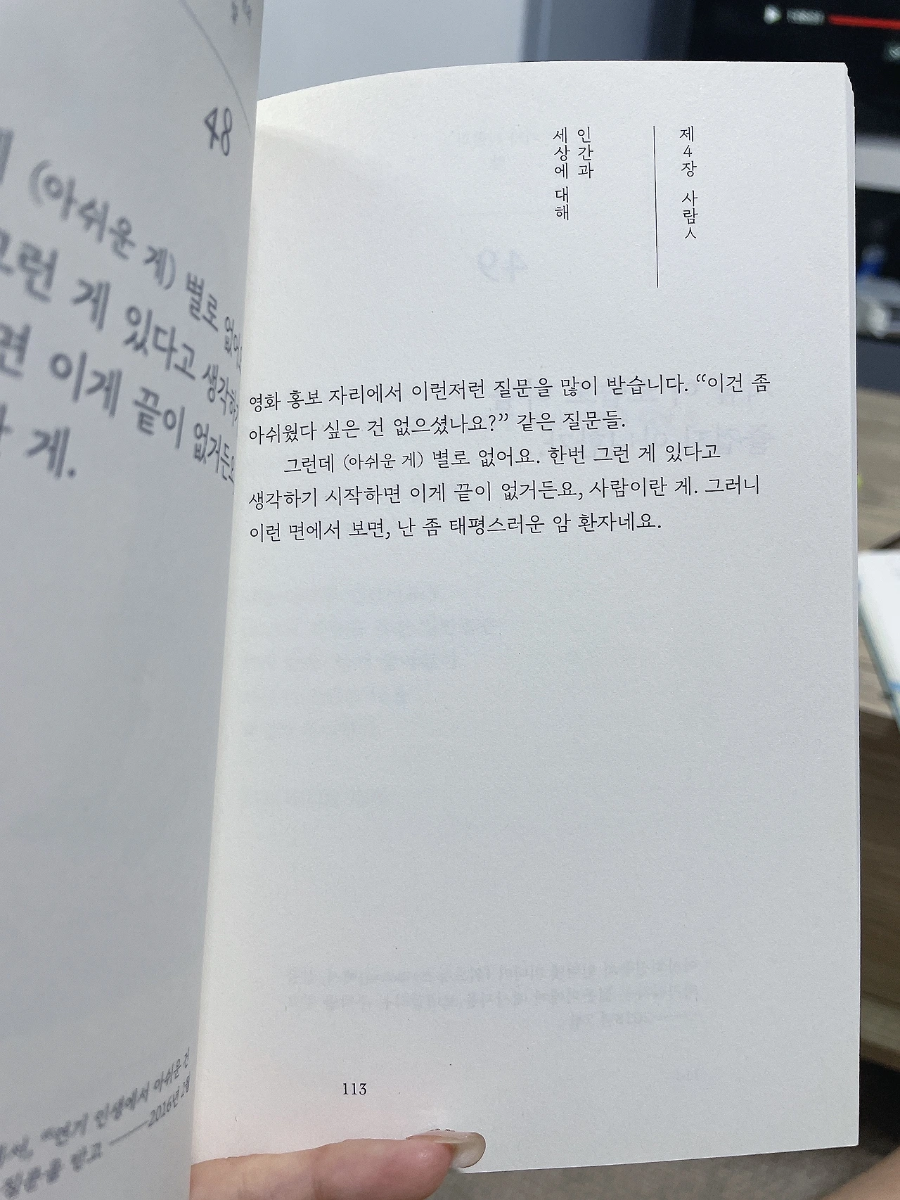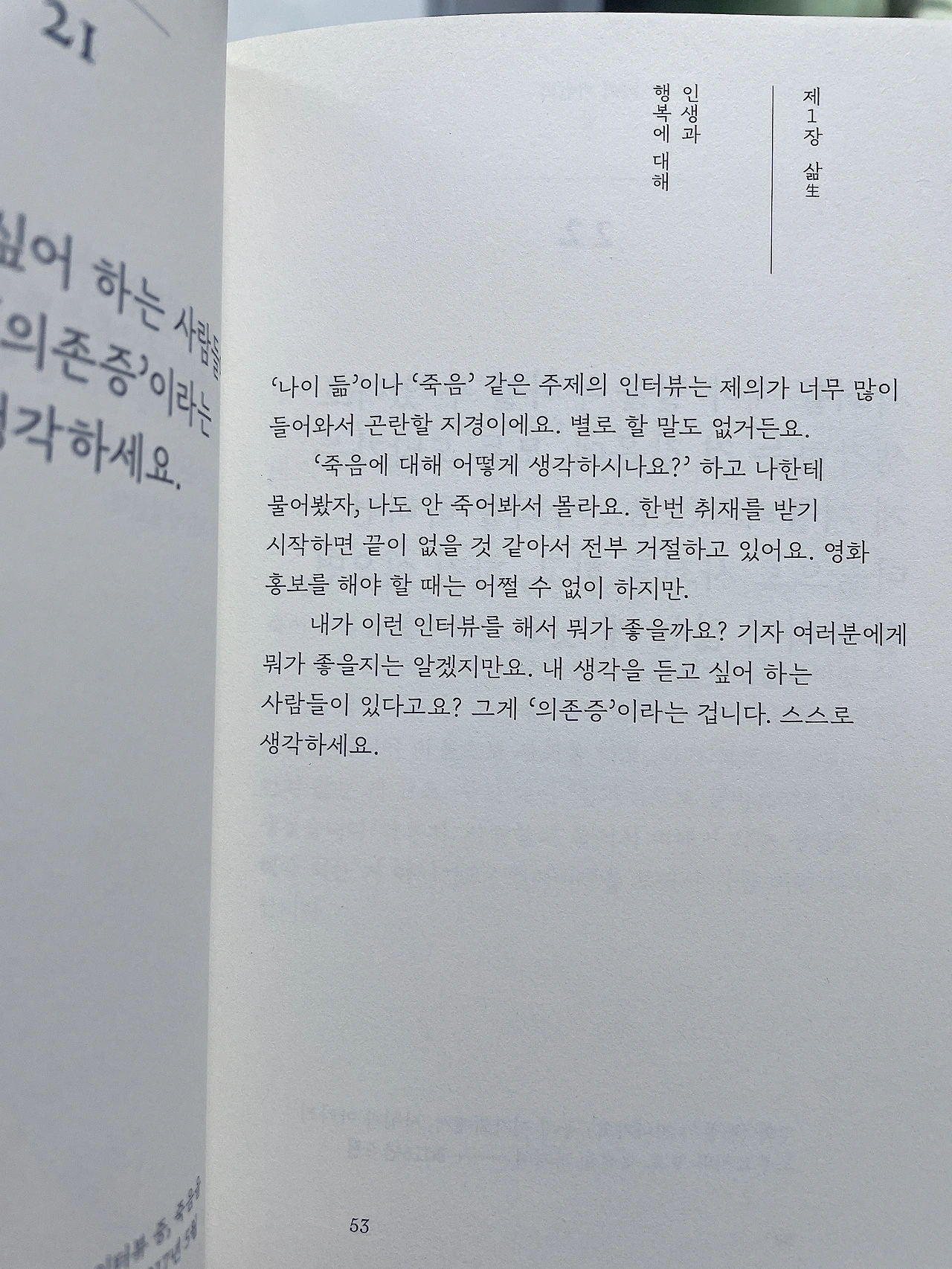 대단한 깨우침을 주는 그런 이야기는 없다. 뭔가 드라마틱하고 임팩트 있는 이야기 없이 멋있을 수 있는 게 과연 쉬운 일인가. 나는 험난한 인생을 산 이야기보다 이게 더 어려운 일이라고 생각한다.