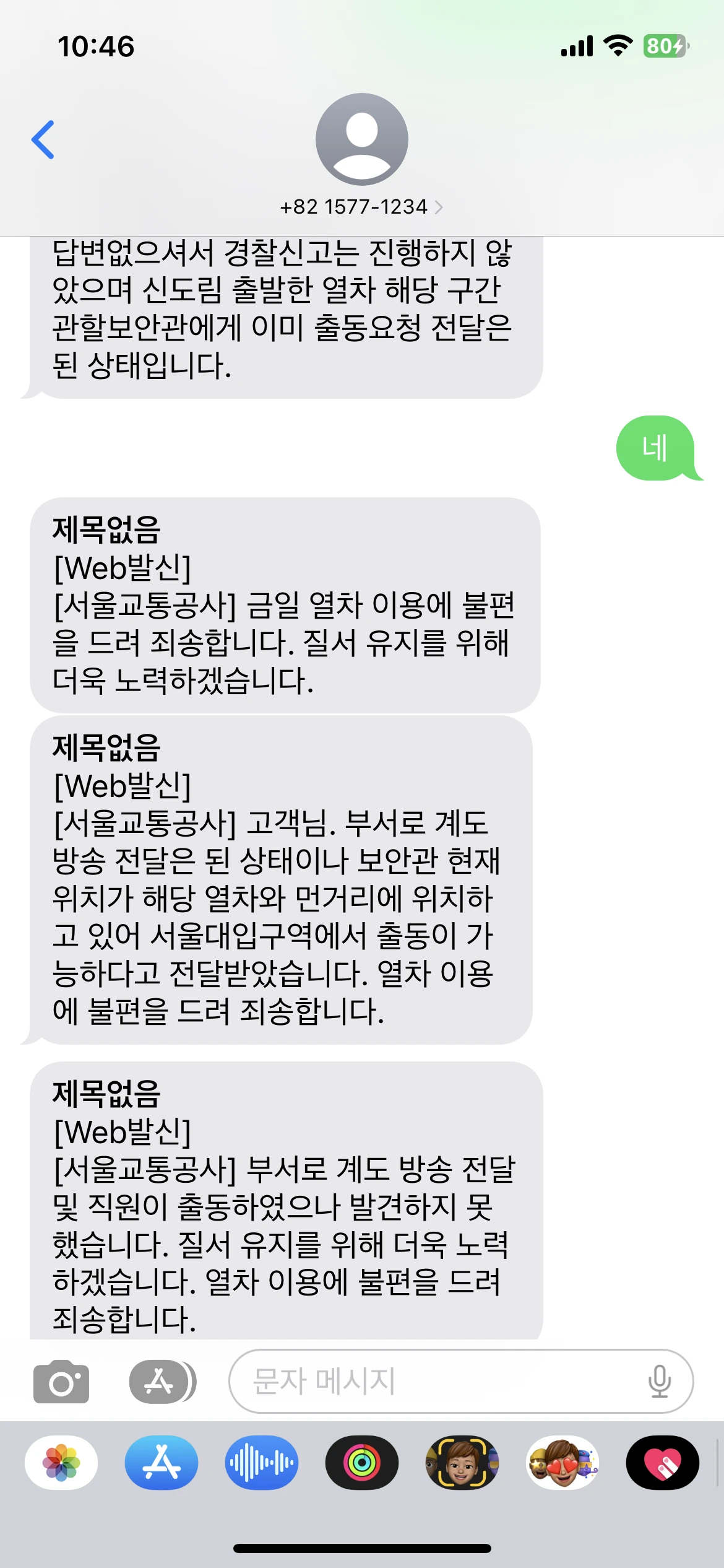 그때쯤 1577-1234(서울교통공사 민원신고센터. 동영상, 문자 전송 가능)로 상황을 알렸다.