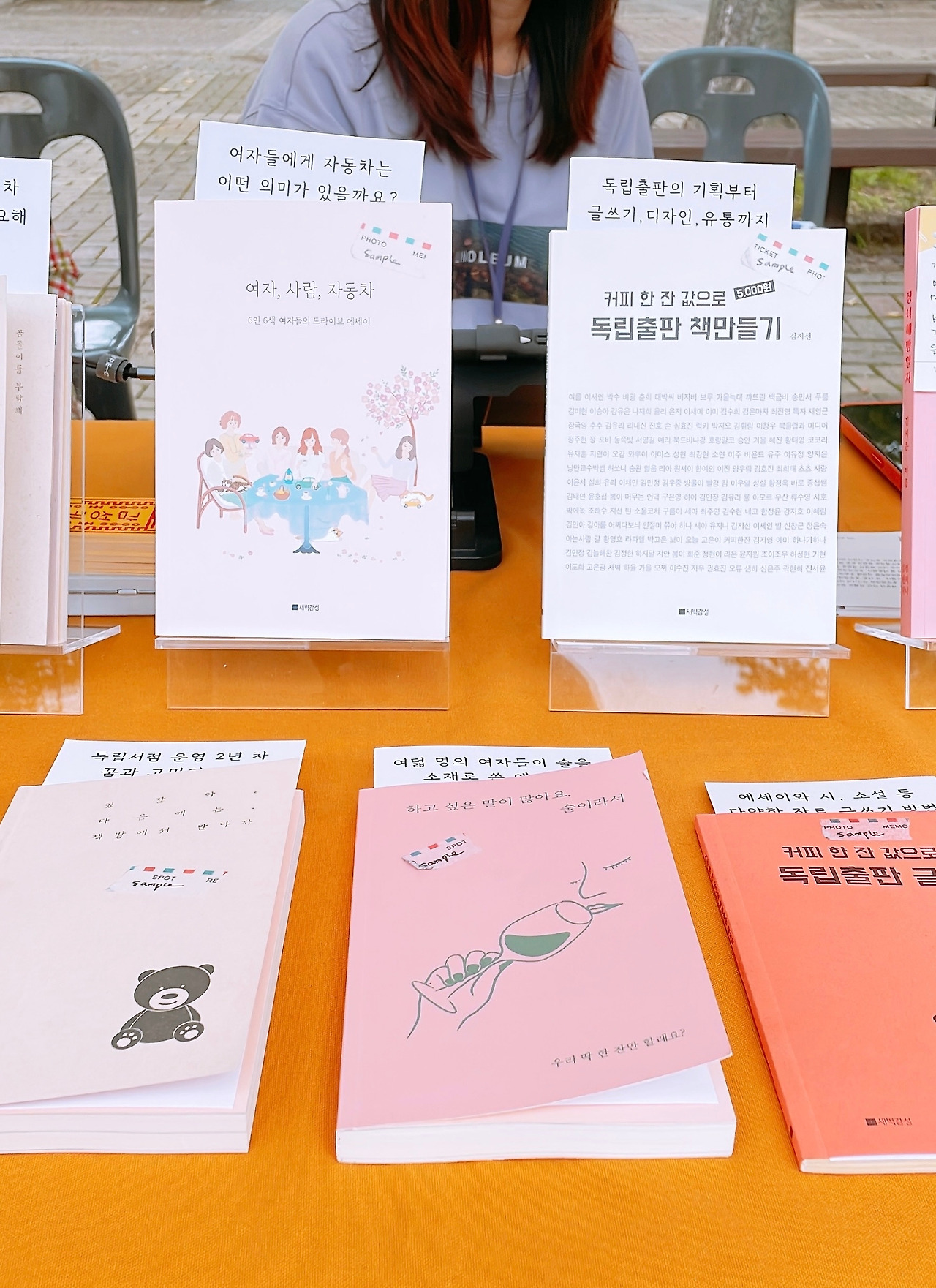 얼마 전 지역 도서전에 참가해 책방 사장님, 작가 2인, 나까지 총 4명의 여자가 금요일부터 일요일까지 3일 동안 판매 부스를 지켰던 적이 있었다. 3일 중에서 각자의 일정이 허락하는 날, 허락하는 시간에 나와서 탄력적으로 자리를 함께 하고, 자기 책 판매를 하면 그렇게 판매한 책 수익의 대부분이 작가에게 가는 판매 시스템이었다.
