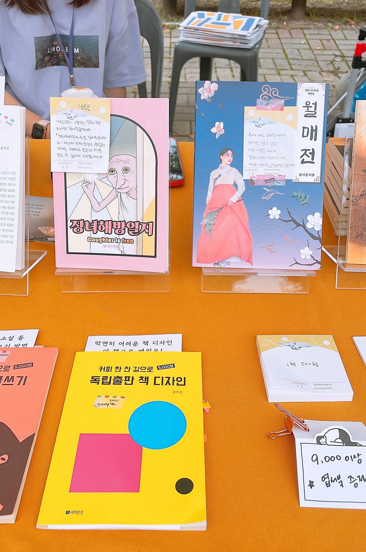 아예 반대로, 글을 쓰는 일로, 전업 작가로서 생계를 꾸리고 싶은 남자 작가들은 아예 따로 부스를 내서 집중적으로 자기 책만 판다. 자기가 쓴 책에, 자신만의 색을 입히고, 그걸 뚜렷하게 보여주기 위해서.