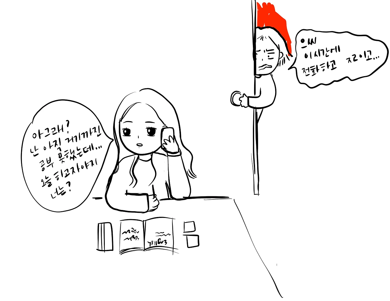 쓸데없이 밤마다 전화를 하기 시작했다. 시험 범위가 어디인지, 친구들이랑 같이 놀러를 가자는 둥, 정말 그야말로 쓸데없는 걸로 한 시간씩 통화를 하는데