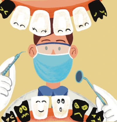 “저런, 이가 많이 썩었군요. 앞으로 이를 깨끗이 닦아야 해요.”