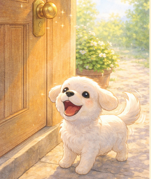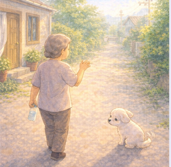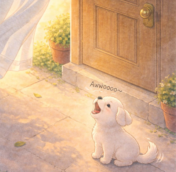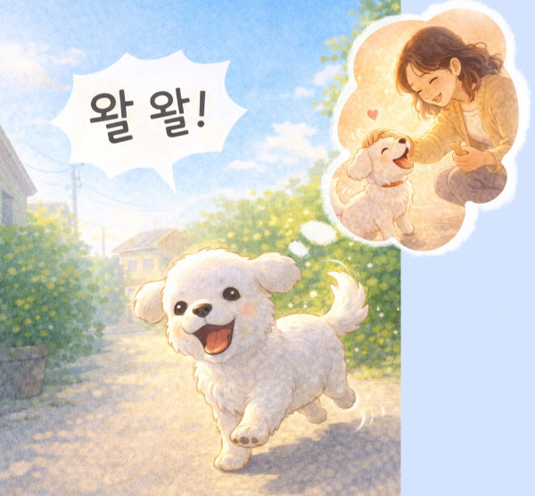 아침 6시 30분만 되면 우리 집 현관 앞에서 왈왈 짖는 강아지가 있습니다. 앞집에 사는 친정엄마네 강아지이지요. 이불속에서 갈등하는 5분의 아침 시간을 동화로 만들어 보았습니다. AI가 강아지 그림을 예쁘게 그려 주었죠?