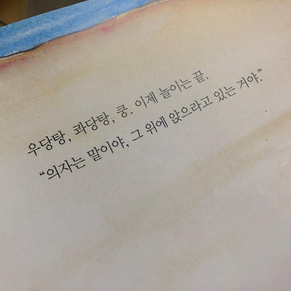 “의자는 말이야, 그 위에 앉으라고 있는 거야.”