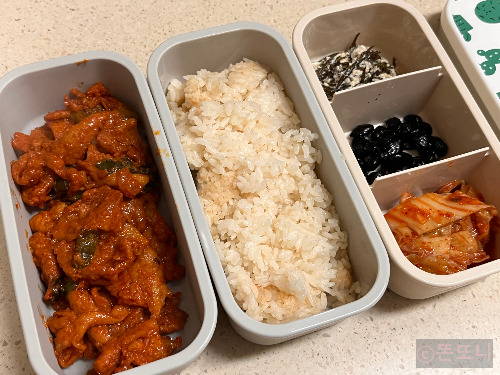 이 날의 메뉴 : 제육볶음/톳두부무침/콩자반/김치
