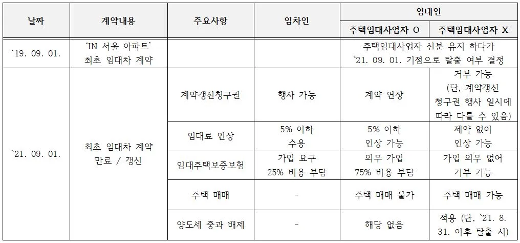2019년 9월 1일 : ‘IN 서울 아파트’ 최초 임대차 계약 체결