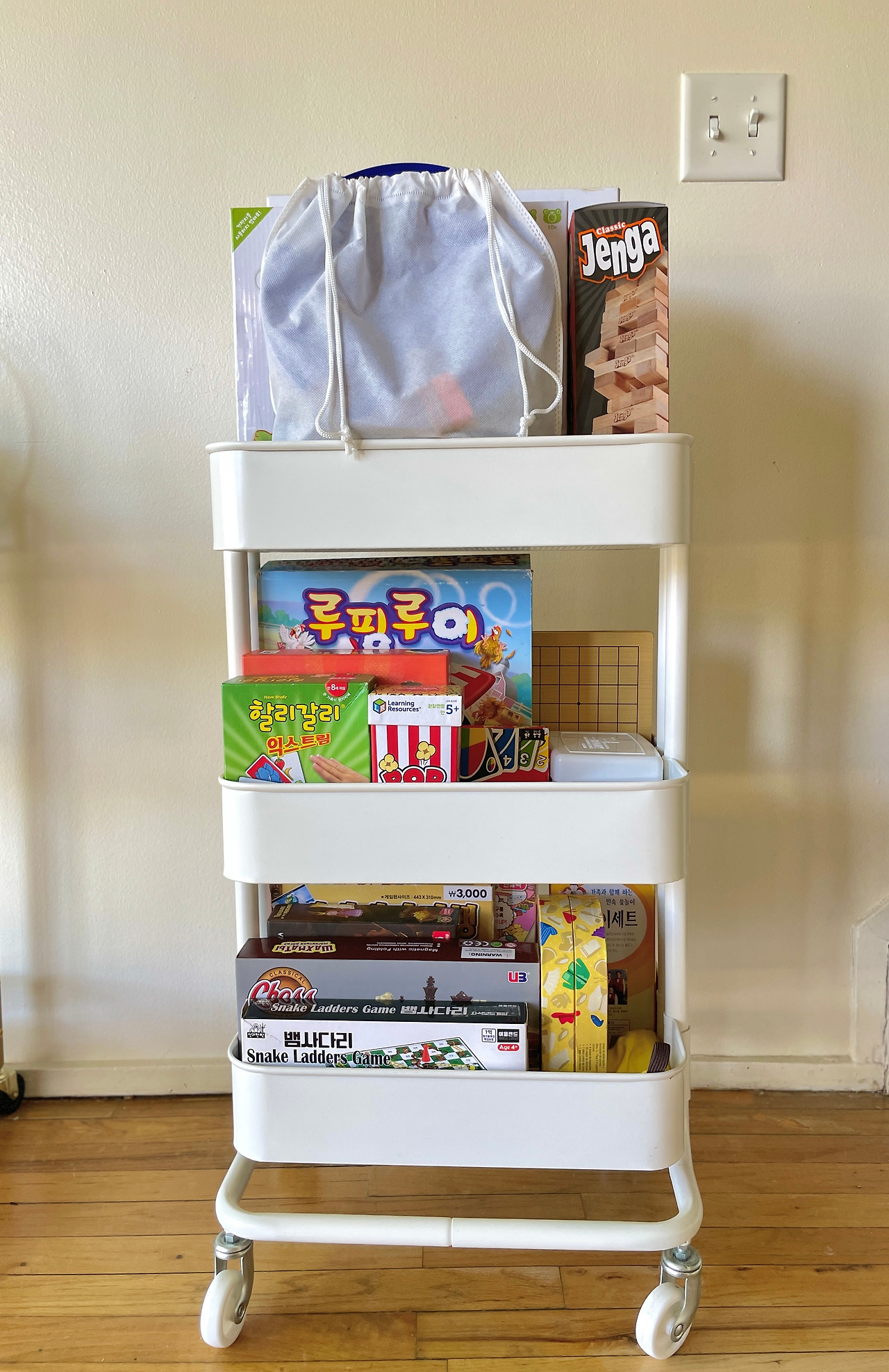 ‘존’은 방 하나일 수 도 있지만, 이렇게 카트 하나로도 가능하다. 우리 집에는 다양한 카트가 존재하는데 그 중 아이 친구들이 놀러오거나 주말에 할 일 없을 때 가장 많이 끌려나오는 것이 이 ‘보드게임 카트’이다. 카트의 장점은 끌고 다니면서 언제든 그곳을 ‘존’으로 만들 수 있다는 것이다. 보관과 이동이 편하여 아이들도 쉽게 정리 가능하고, 보기에도 깔끔하다. 물론 쉬고 싶을 때 저걸 끌고 오며 미소짓는 아이를 보면 공포감이 느껴지기도 한다.