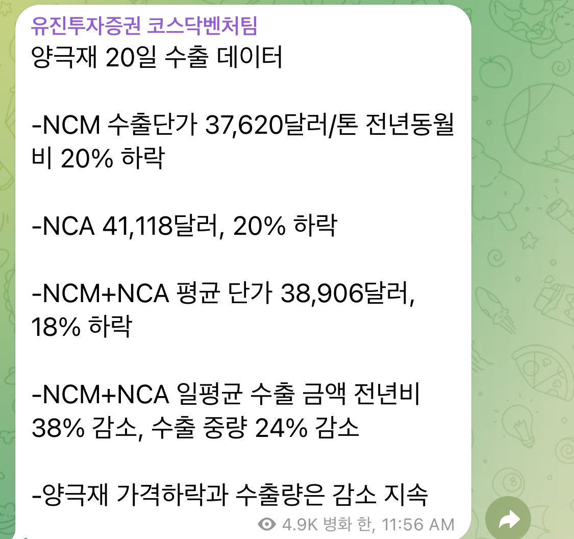 그에 따라 부품과 원자재인 배터리, 양극재, 전구체, 리튬 가격도 좋지않다. 중국/유럽/미국이 전기차 시장을 이끌었던 주체인데 어느 정도의 점유율을 채웠고 수요가 죽고있다.