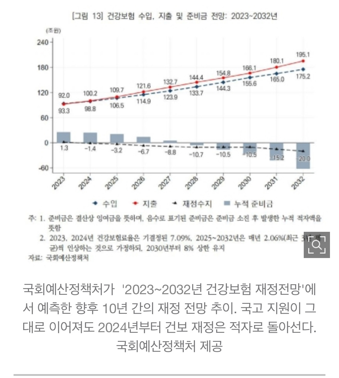 한국은 건강보험으로 세계에서 최고의 의료서비스를 뽐내는데 까보면 꼭 그렇지도 않다. 올해 기준 정부 예산을 사용하는 국고지원금 11조빼면 9.7조 적자다. 지금까지 적자는 점점 커져갔고 정치권은 국민연금처럼 투표생각해서 건보료를 올릴 생각조차 못하고 있음.